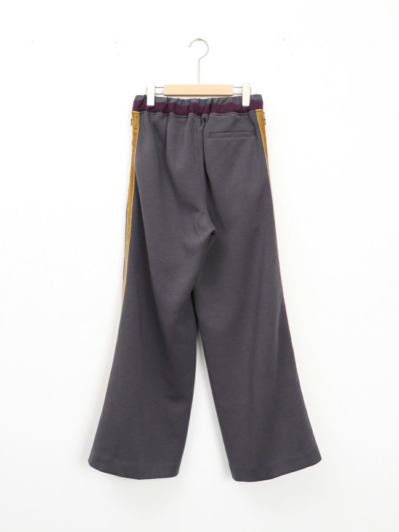 ベロア素材のサイドラインがアクセントのワイドパンツ。 センターにはタック風のステッチが施されており、ラフさの中にもきちんと感を演出。Tシャツとスニーカーでカジュアルに、ブラウスやブーツと合わせてモードにも。着こなし次第で、様々な表情を見せてくれます。