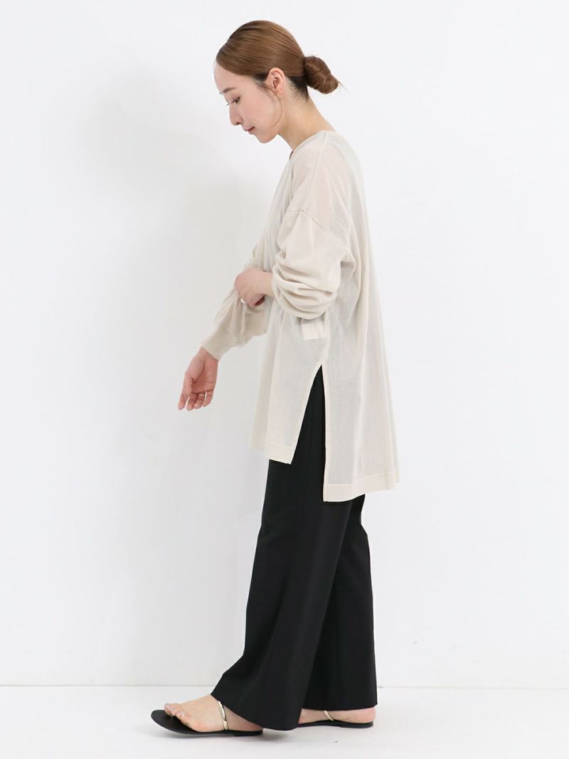 [ mao made / マオメイド ] 細ボーダーニットロンT