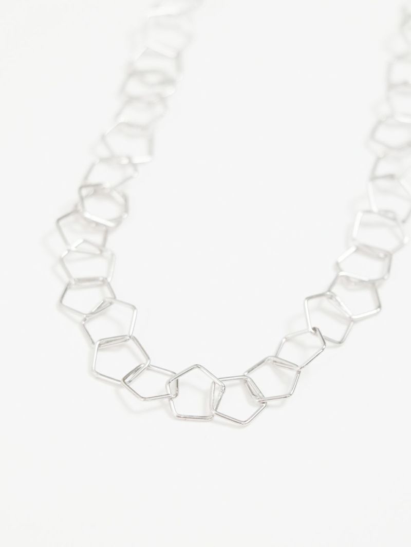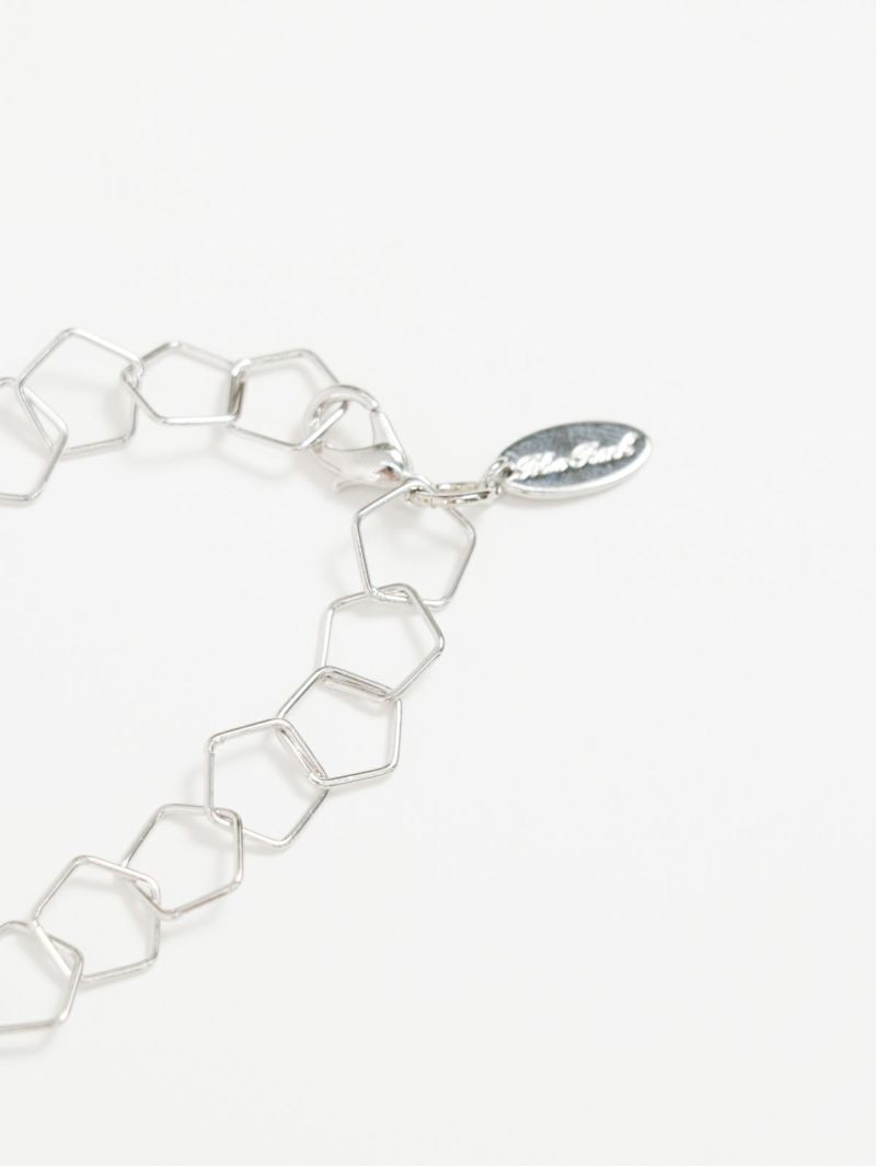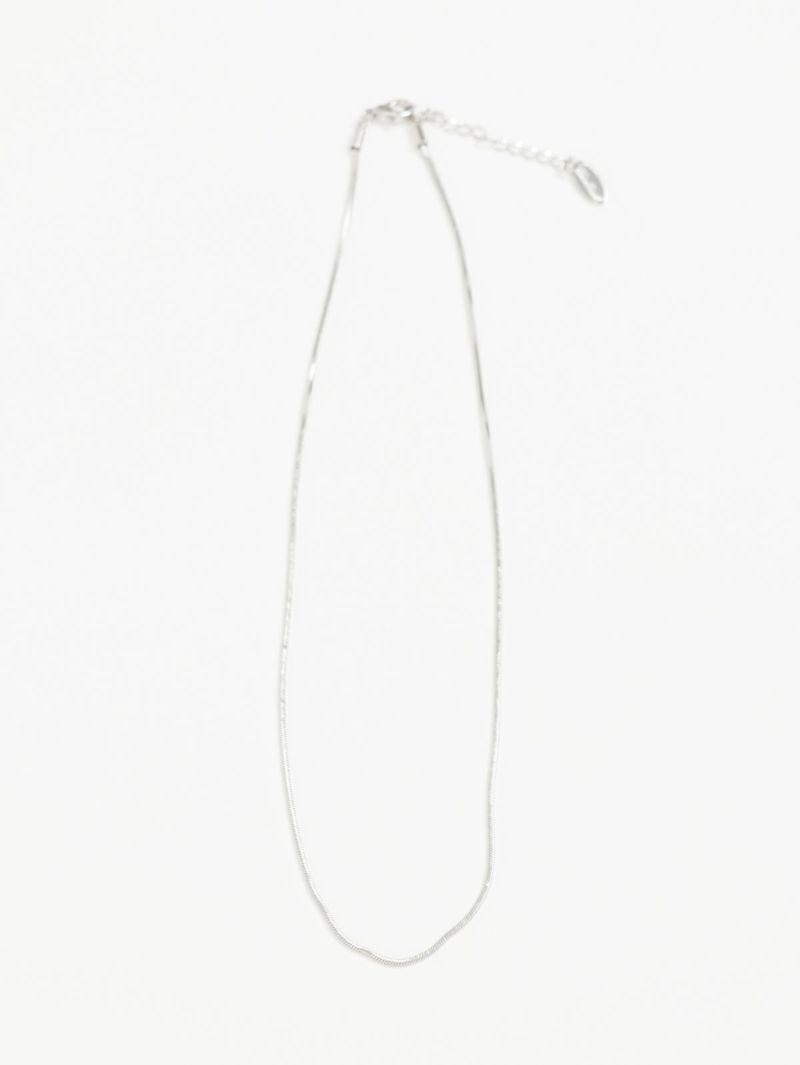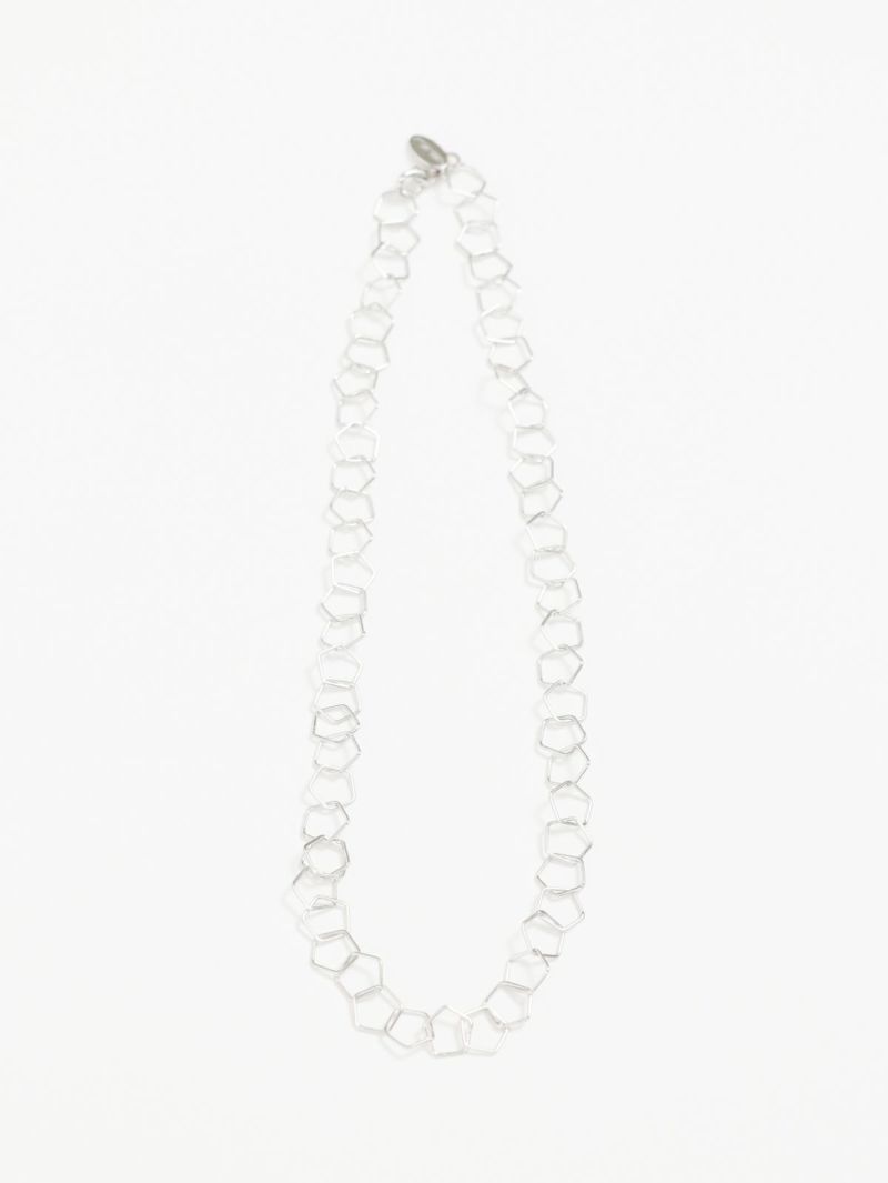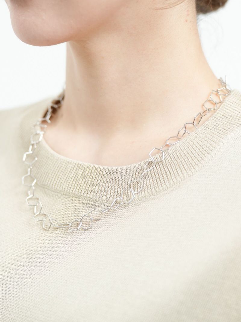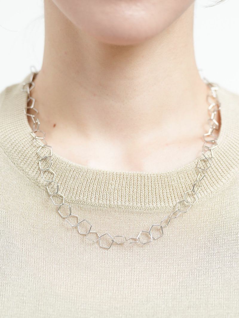 2本のチェーンがSETになったネックレス。 華奢で滑らかなスネークチェーンは単品でどんなファッションにも使えるカッコ可愛い1本。五角形のペンタゴンチェーンは光の当たり具合できらりと光ります。留め具で止める長さが調整出来るのでブレスレットにも◎