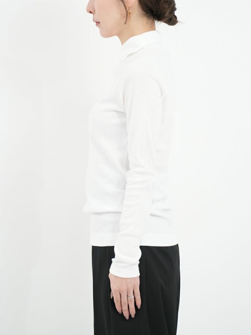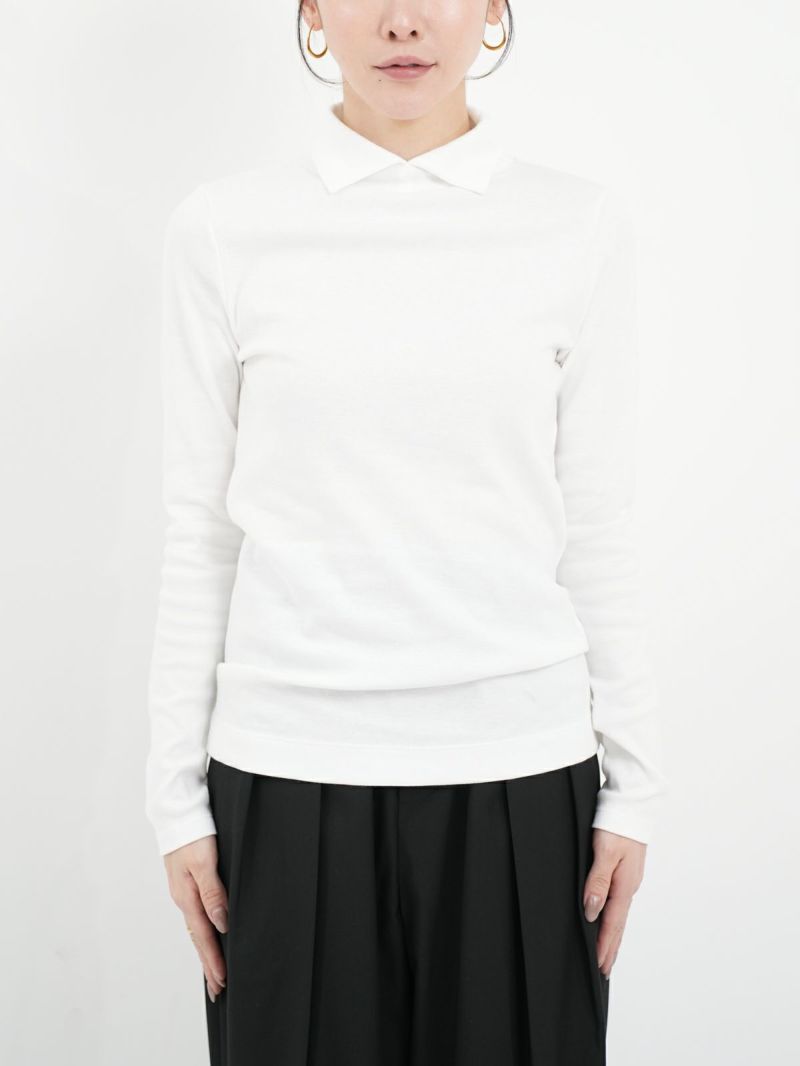 きめ細やかな肌触りの柔らかいフランス製コットン100%のカットソー。 衿の部分は首元に沿うデザインとなっており締め付け感がなく優しくフィットします。レイヤードのインナーとしても◎
