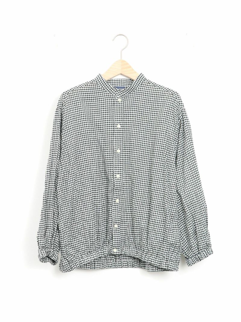 シャーリングが魅力のチェックシャツ。 さらっとした着心地で肌離れもよく◎裾はゴム仕様になっているのでブルゾン風にも着用していただけます。アイロンがけ不要なのもうれしいポイントです。