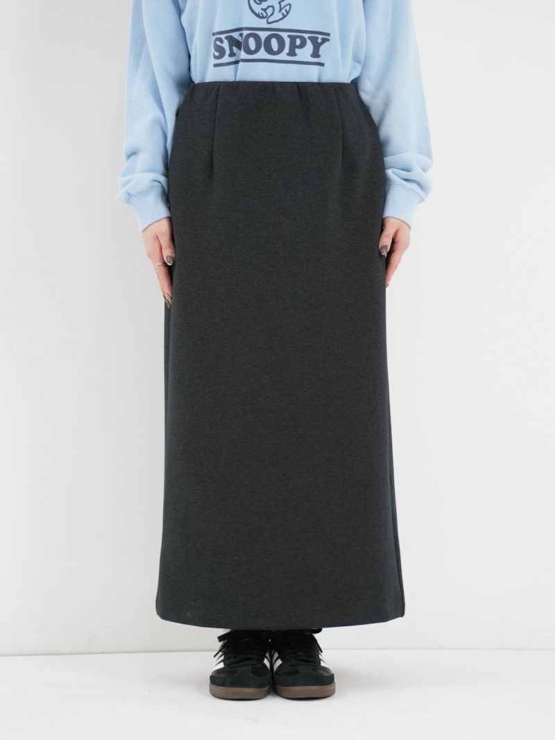 伸縮性抜群のタイトスカート。 タイトシルエットですが柔らかく、ウエストもゴム仕様なのでストレスフリーに着用できるのも嬉しいポイント!カジュアルにスウェットやニットで合わせでも◎ブラウスやJKにも合わせやすいので少しかしこまったシーンにも活躍します。 ※生地の特性により、Blackのみ丈が2〜3cmほど短い仕様となっております。