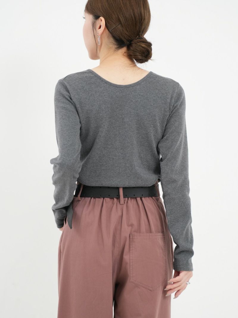 イタリア製アンダーウェアメーカーのgicipi。 長めの袖で自然とたまる感じが今らしいバランスで着こなせます。ちょうど良い肉厚感なので、白でも透けにくく下着を気にせず気軽に1枚で着用出来ます。