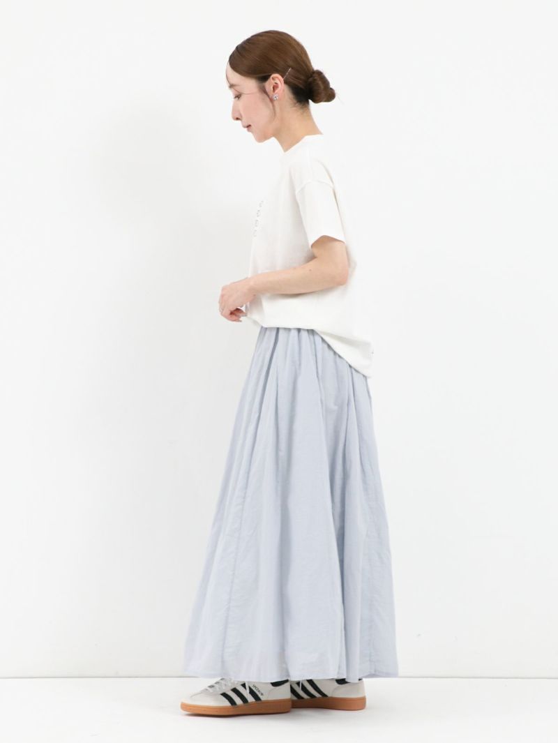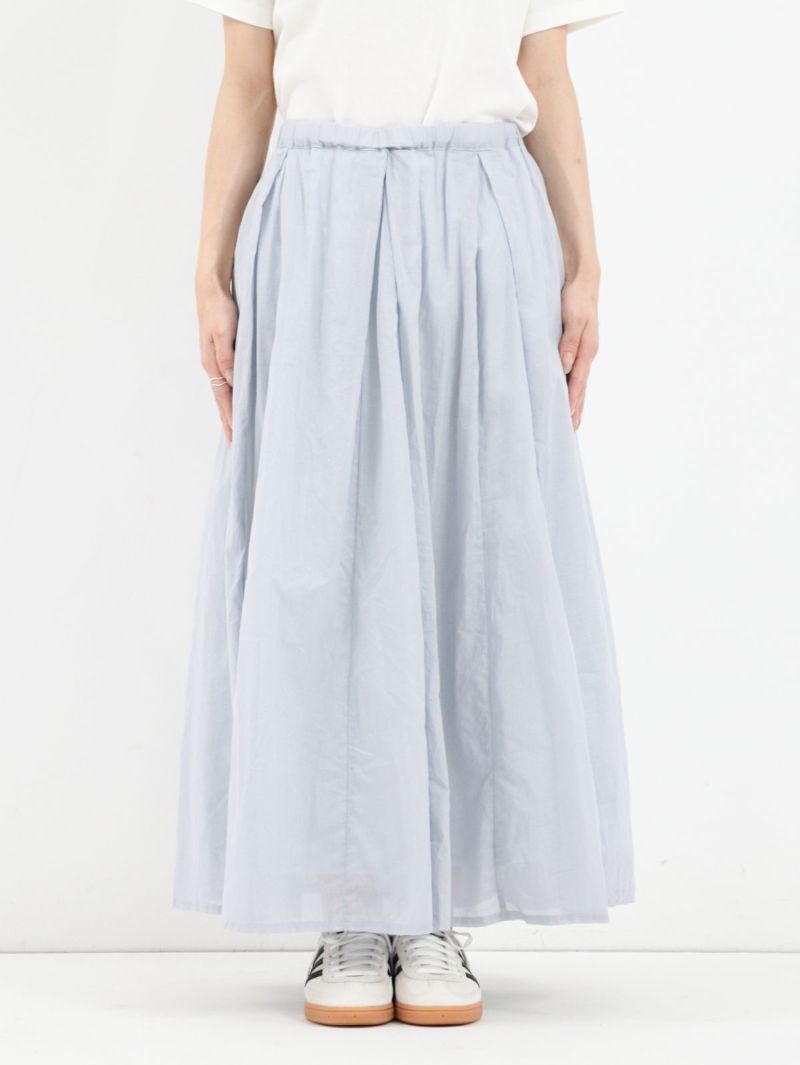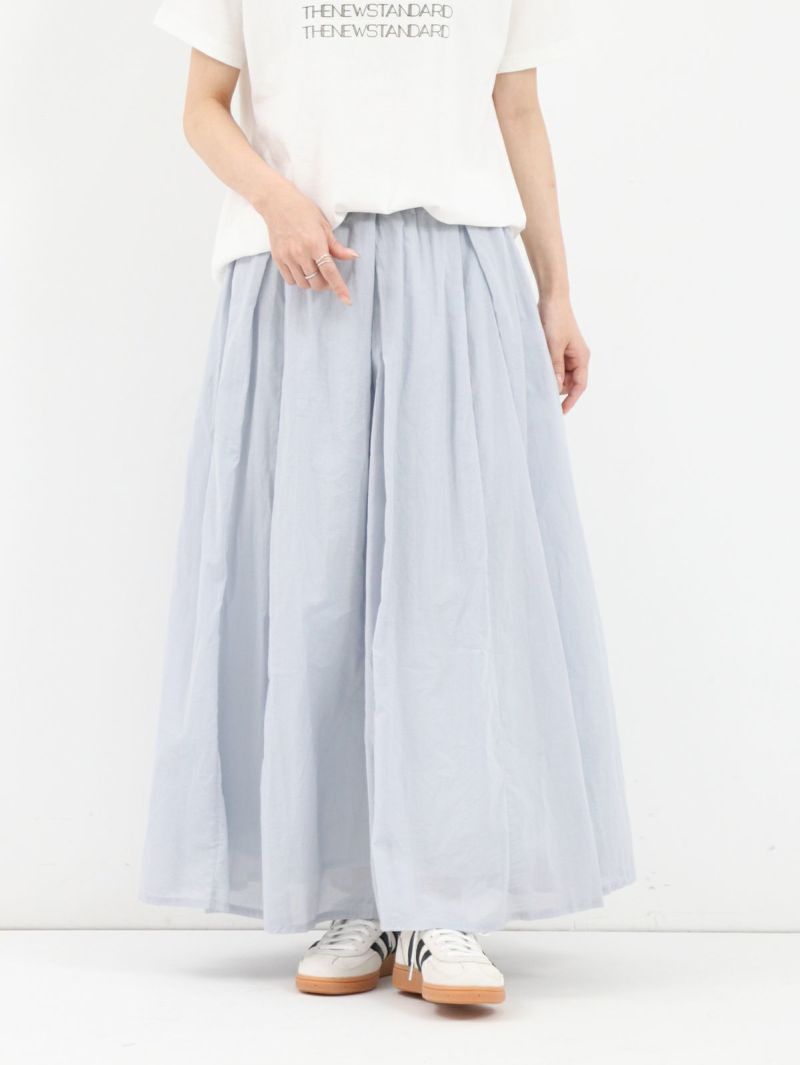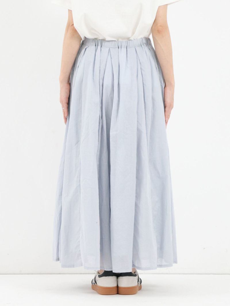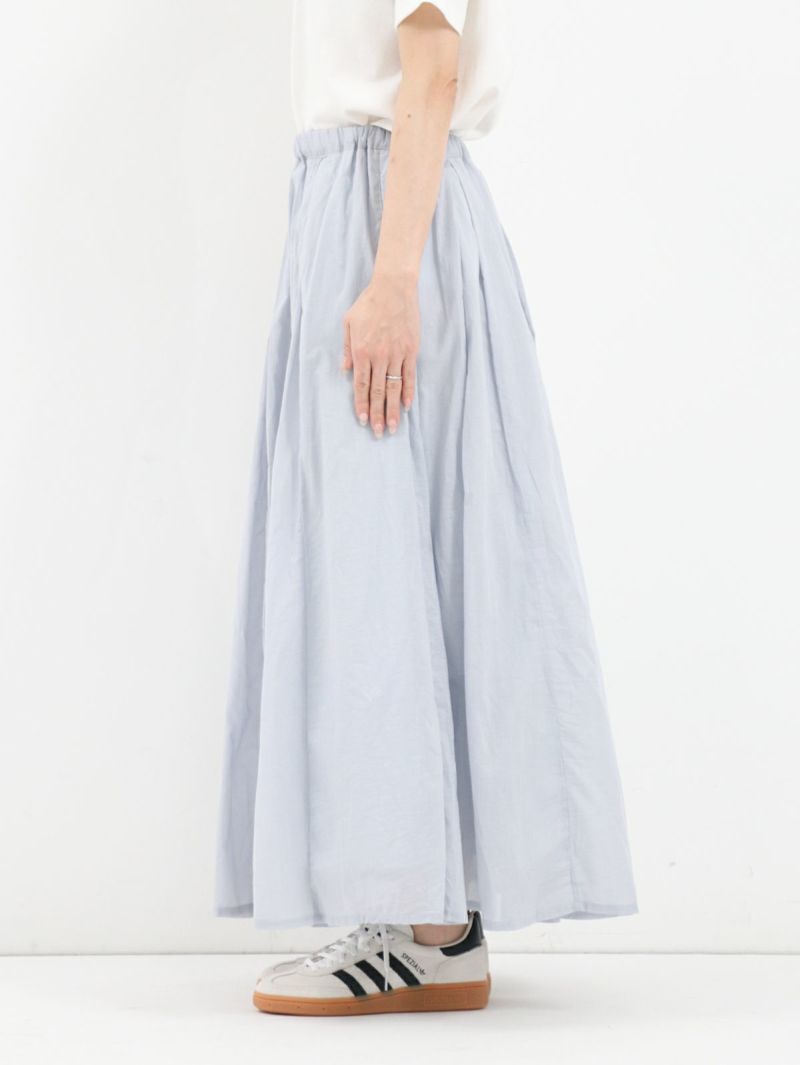 軽くて柔らかなローン生地に立体的なタックとマチを施すことで、ふんわりと美しいシルエットに。透け感をカバーする裏地付きで、1枚で安心して着られるのが◎ラクな穿き心地ながら、ラフになりすぎないのも嬉しいポイント。