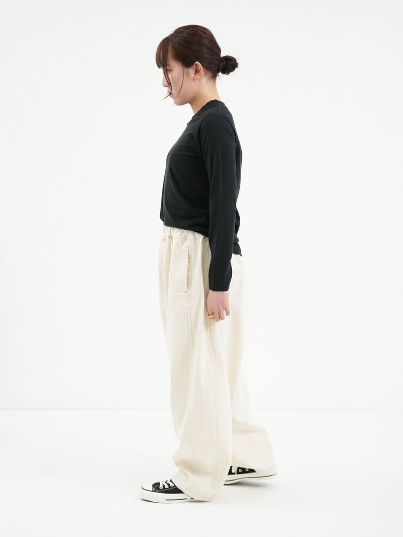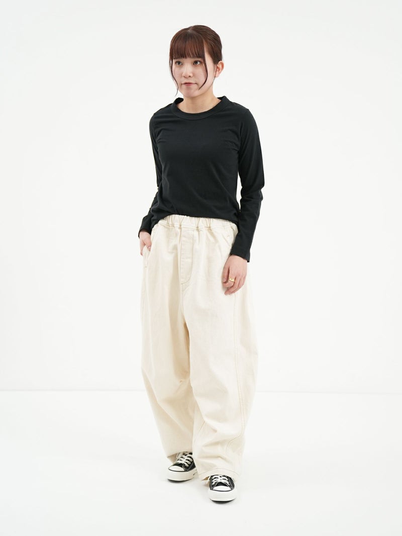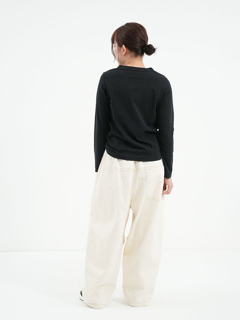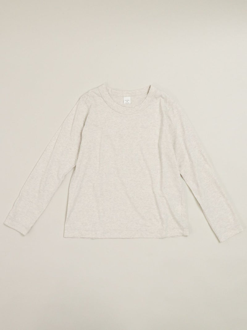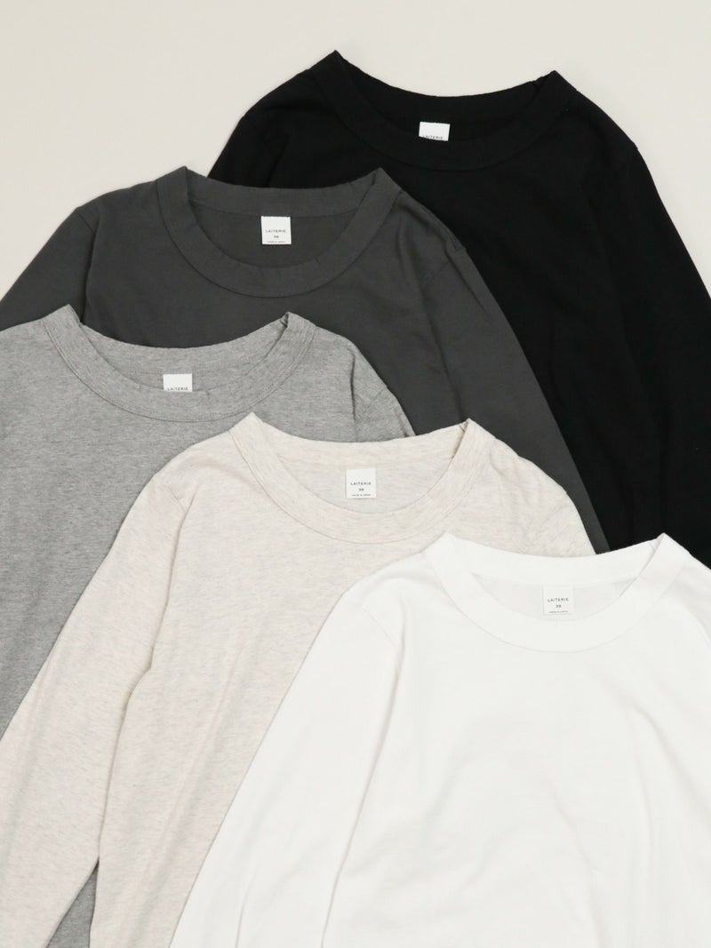大人気の定番ふわふわ天竺のカットソー。 その名の通り、柔らかな風合いのコットン素材で毎日着たくなる心地よさ。程よいフィット感のシンプルなデザインなので1枚でも重ね着でもお使い頂けます。