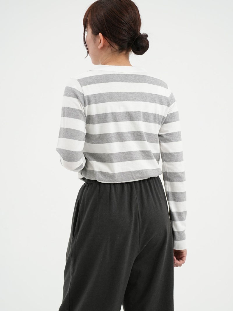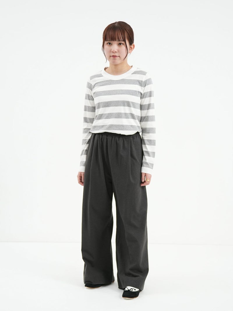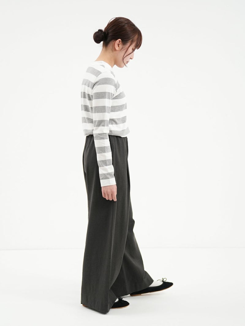 大人気の定番ふわふわ天竺のカットソー。 その名の通り柔らかな風合いのコットン素材で毎日着たくなる心地よさ。程よいフィット感のシンプルなデザインなので1枚でも重ね着でもお使い頂けます。