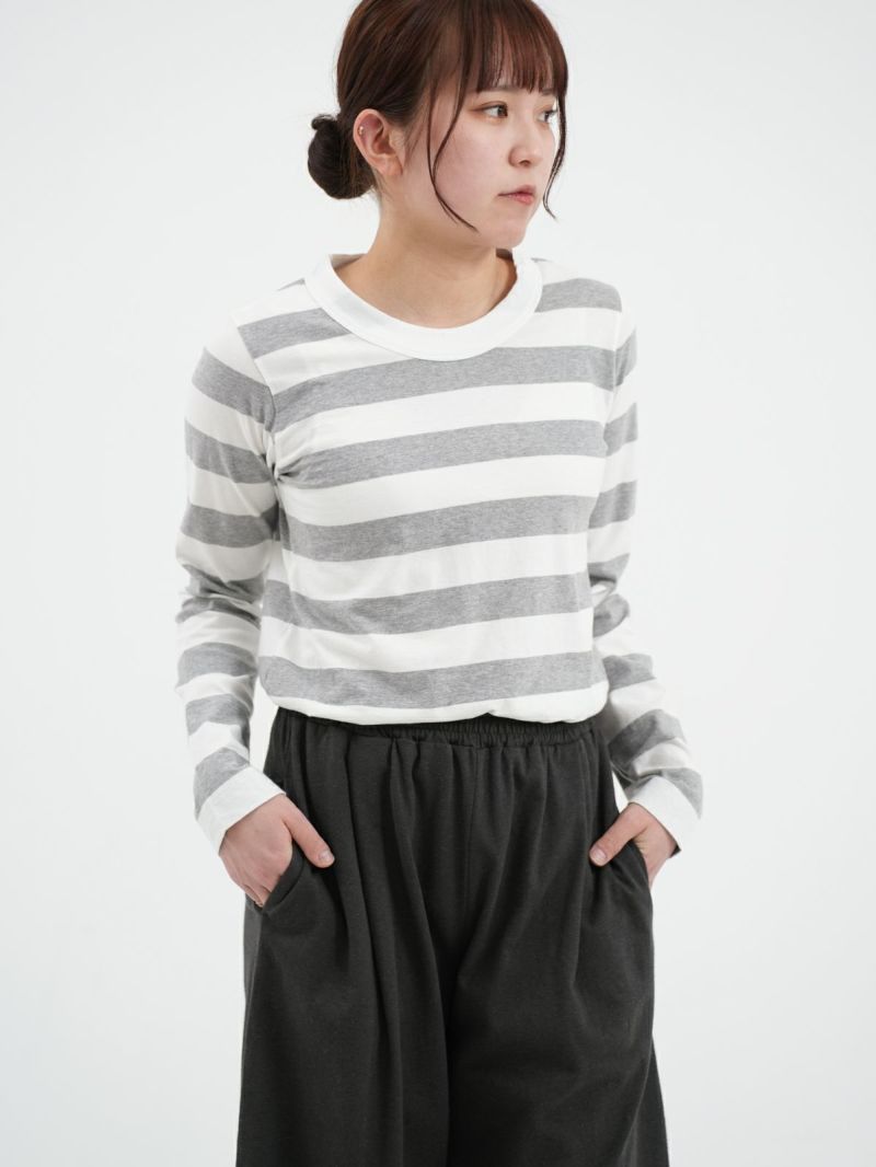 大人気の定番ふわふわ天竺のカットソー。 その名の通り柔らかな風合いのコットン素材で毎日着たくなる心地よさ。程よいフィット感のシンプルなデザインなので1枚でも重ね着でもお使い頂けます。