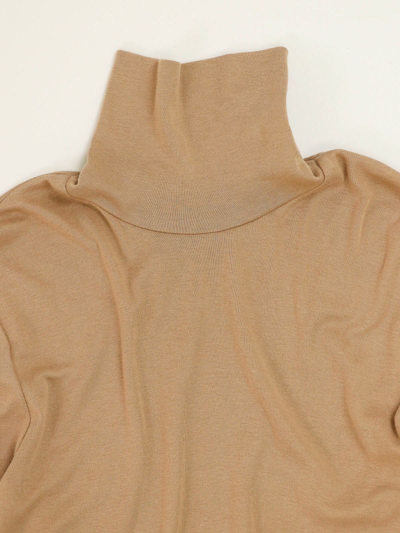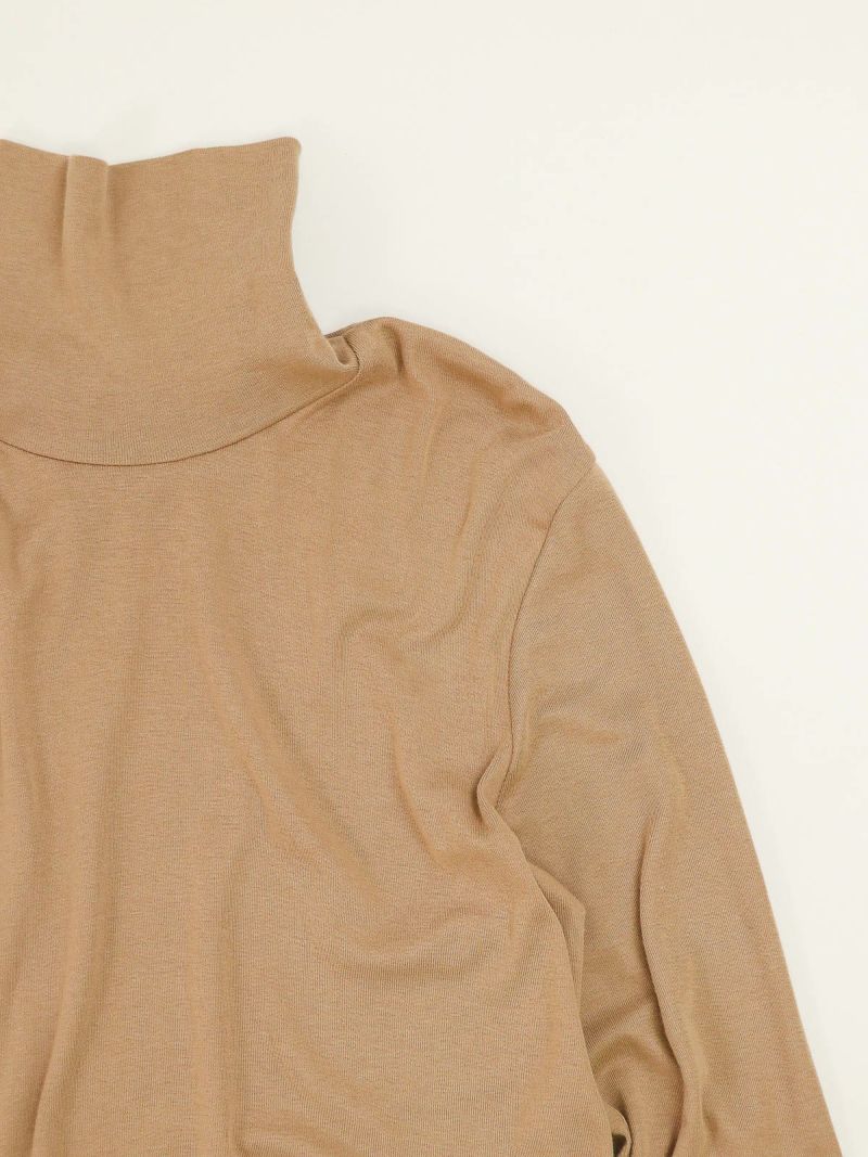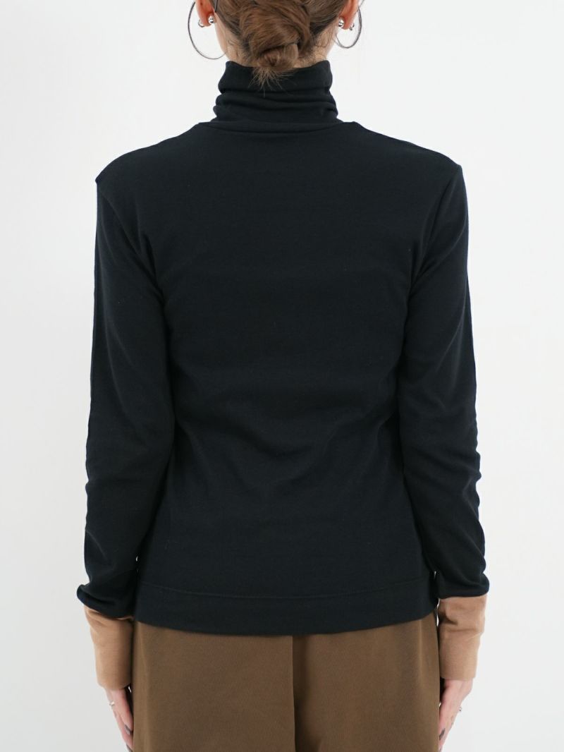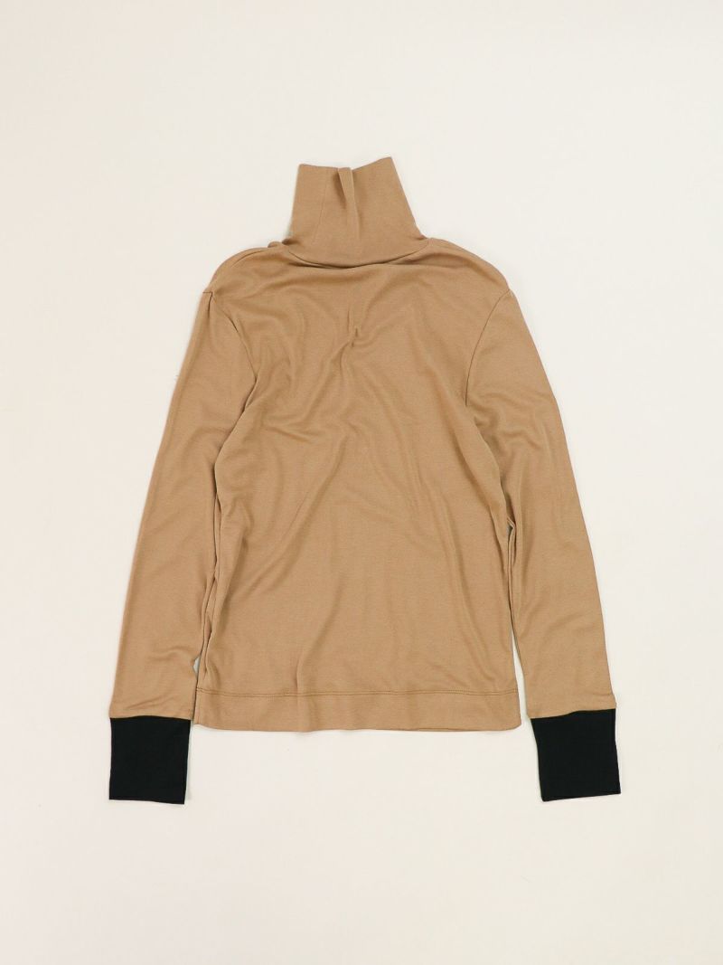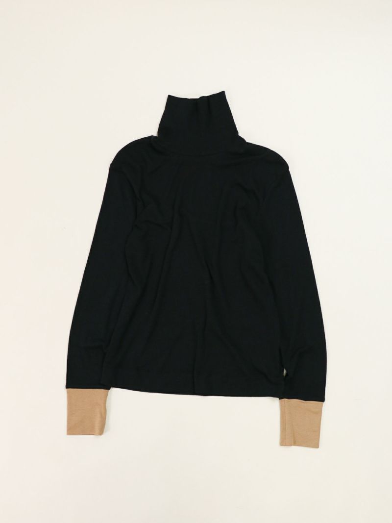 柔らかなコットン素材を使用したバイカラータートル。 袖口の異なるカラーの切り替えがアクセントになり、シンプルながらも程よく個性をプラスしてくれます。窮屈感のない優しいフィット感で1枚着はもちろんジャケットやカーディガンのインナーにもおすすめです。