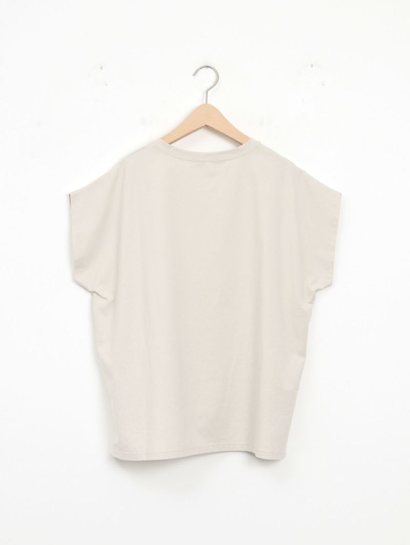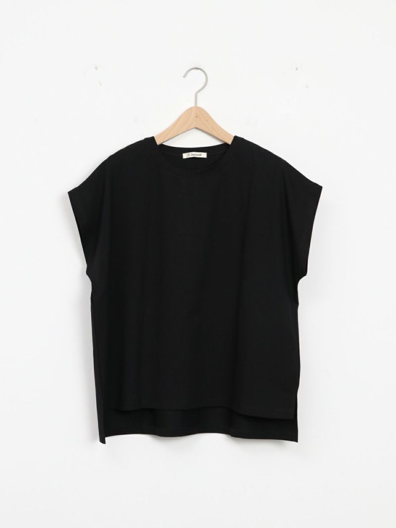 まだ暑いこの季節に気持ちの良い接触冷感機能素材。ゆったりとしたシルエットですが、これからのシーズン、シャツやカーディガンのインナーに活躍する一着です。