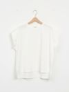 まだ暑いこの季節に気持ちの良い接触冷感機能素材。ゆったりとしたシルエットですが、これからのシーズン、シャツやカーディガンのインナーに活躍する一着です。