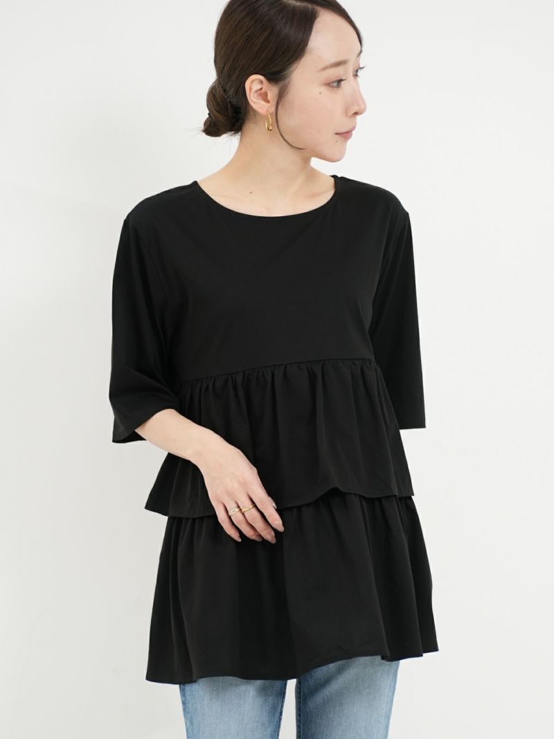 [ Le temps arrete / ルタンアレテ ] シルケット天竺ティアードプルオーバー