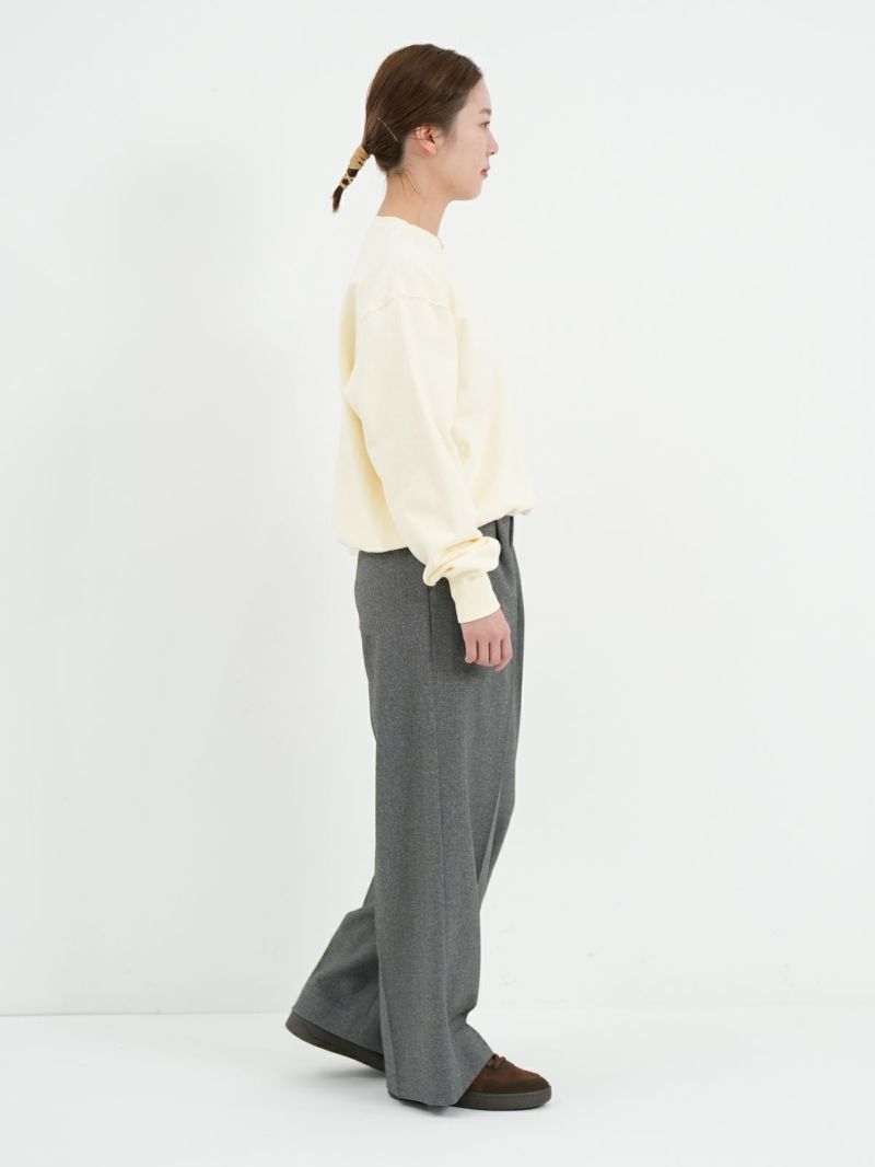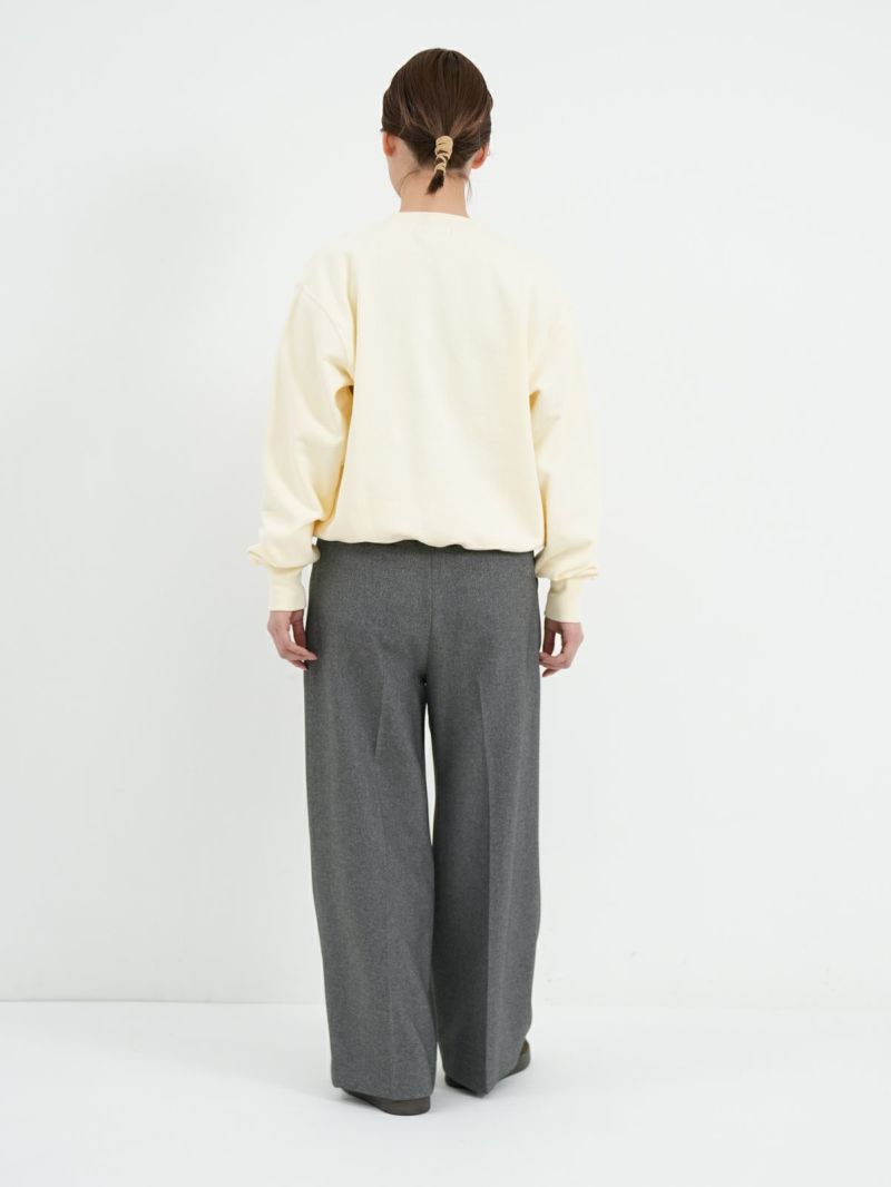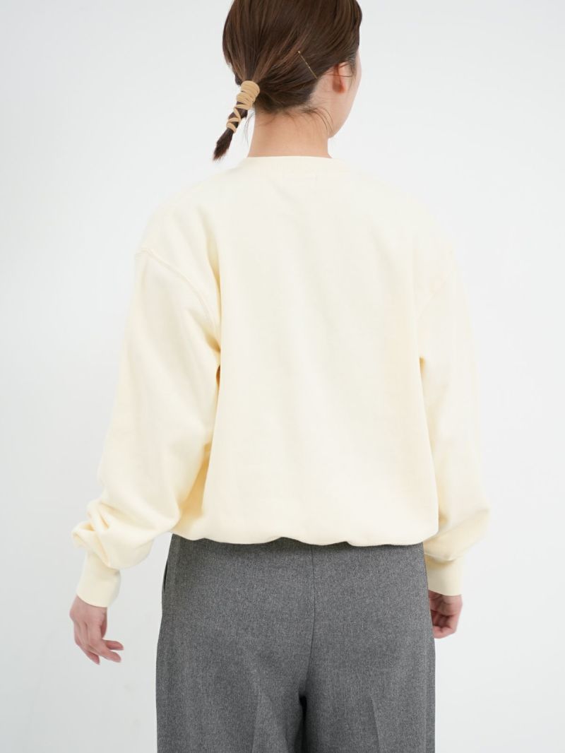 ゆったりとしたシルエットと大きく設計されたアームホールなど 90年代のアスレチックウェアがデザインベースのスウェット。 クロスオーバーネックの衿がアクセントに。 全体的に程良くゆとりのあるシルエットながらも、袖口と裾のリブを しっかり伸ばし付けする事で、すっきりとしたシルエットに仕上げて います。