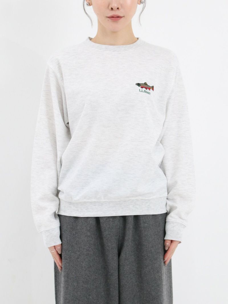 糸の断面を六角形にした機能性ダブルフェイスジャージー素材のクルーネックスウェット。 お魚の刺繍がさりげないアクセントに。吸水速乾性に優れ、ポリエステルながらコットンのようなナチュラルな風合いが魅力で快適な着心地が続く 1枚です。