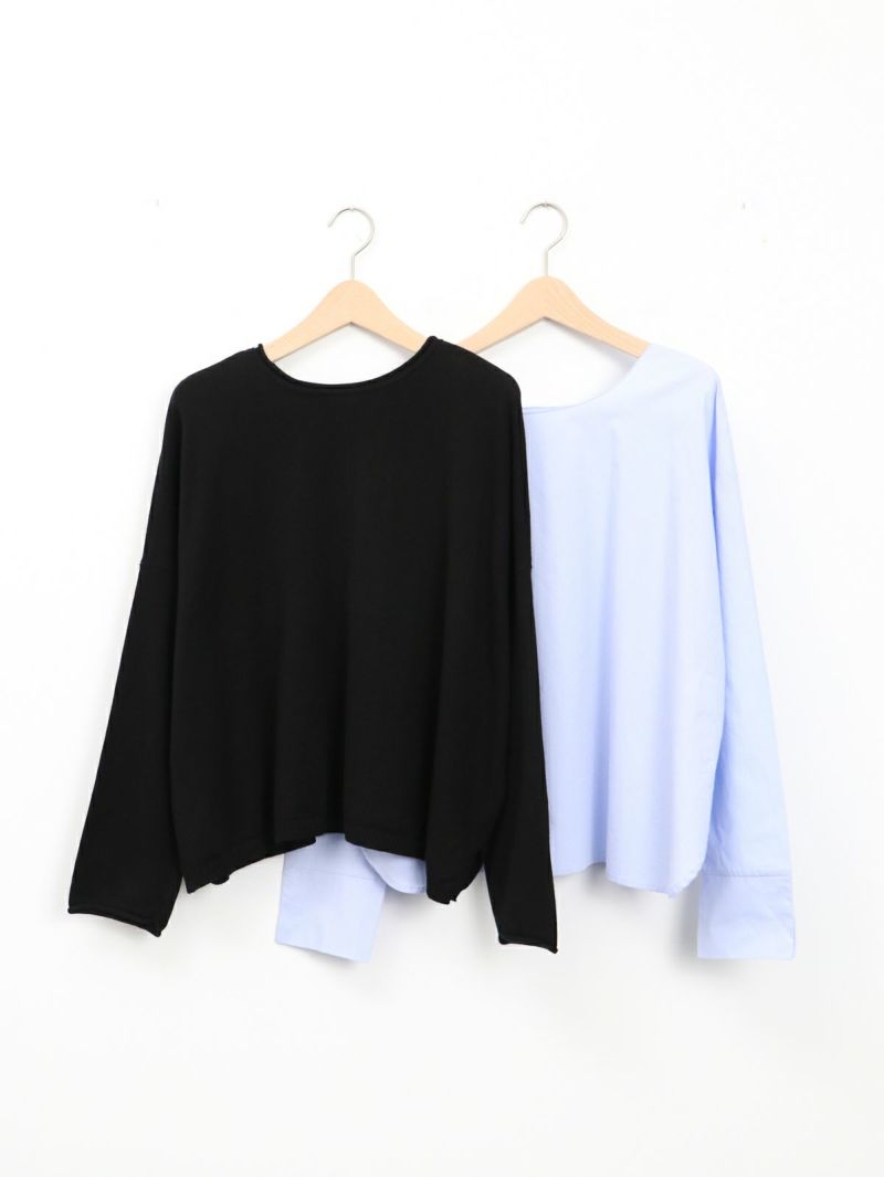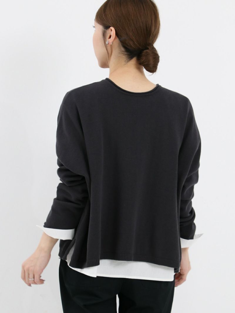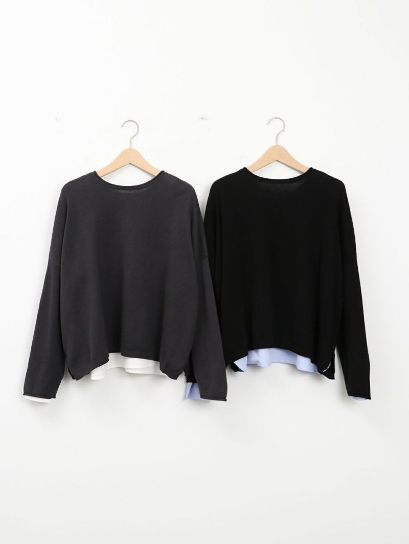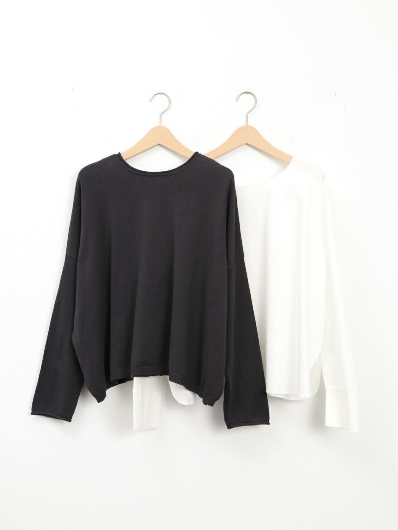 ふっくらとした柔らかな肌触りが気持ち良い薄手のコットンニットと、布帛のインナーブラウスがレイヤードされたプルオーバーセット。 カラーによって組み合わせの異なるインナーはセパレートになっていて、レイヤードはもちろん単品でも使いやすいシンプルなデザイン。前後どちらでも着用が可能な2wayデザインで、アクセントになるボタンを前後にして違った雰囲気でお楽しみいただけます。ご自宅でお洗濯が出来るのも嬉しいポイント。ロングシーズン活躍する、着回し力も高いおすすめアイテムです。