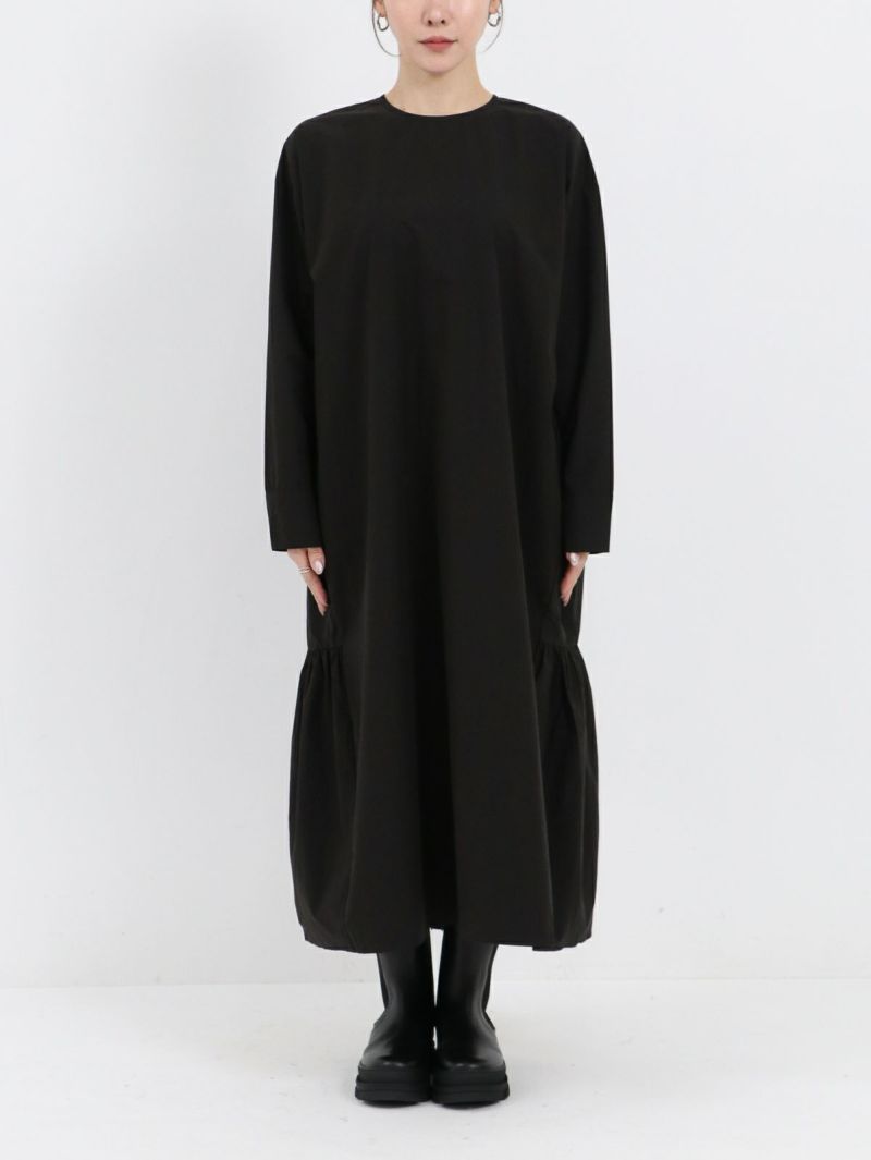 細番手の糸を高密度に織った、ハリ感のある洗いざらしコットン100%のワンピース。