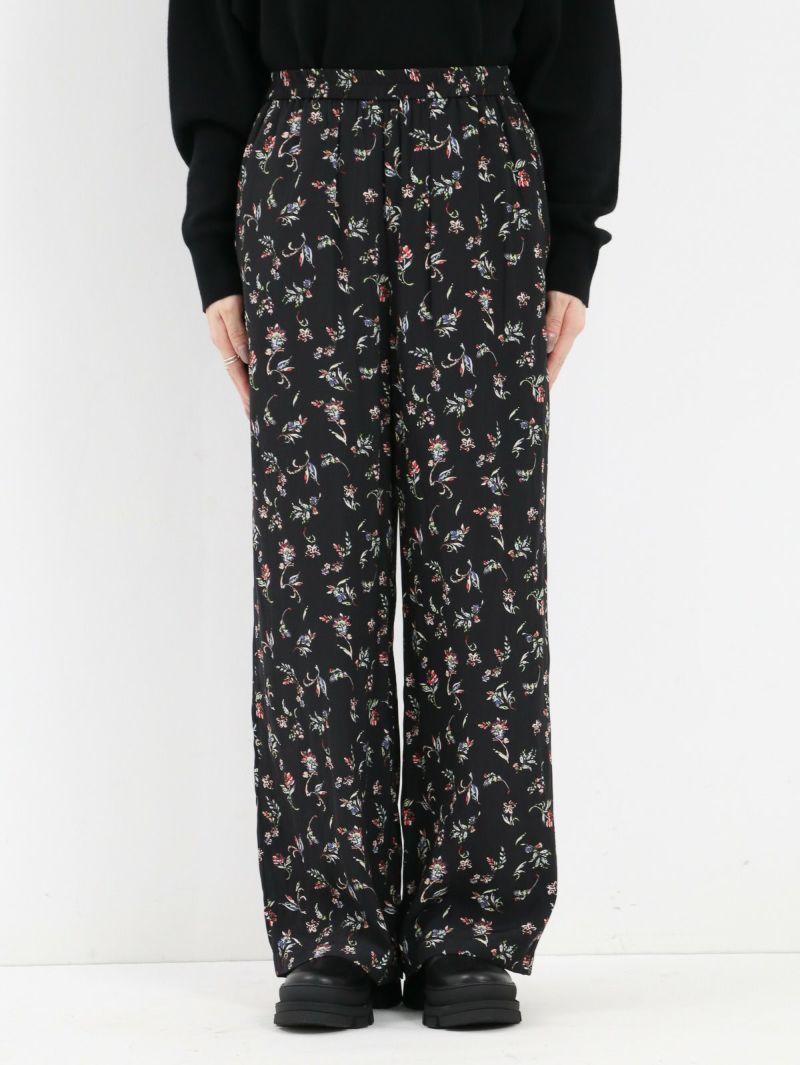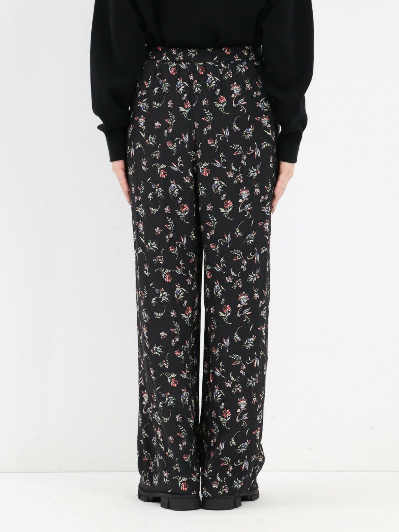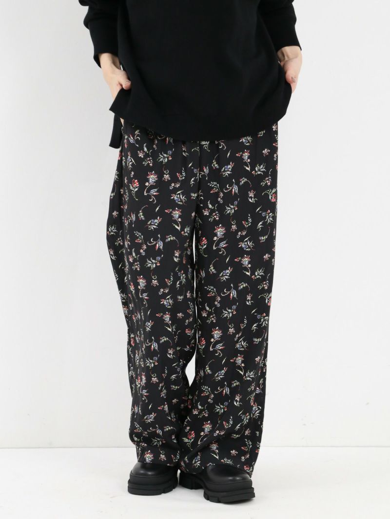 自然なツヤとしわ感が魅力のプリントセミワイドパンツ。 丁度良い落ち感で、シルエットが綺麗に映ります。ブラックと小花柄のコントラストで大人かわいいパンツコーデが楽しめます。