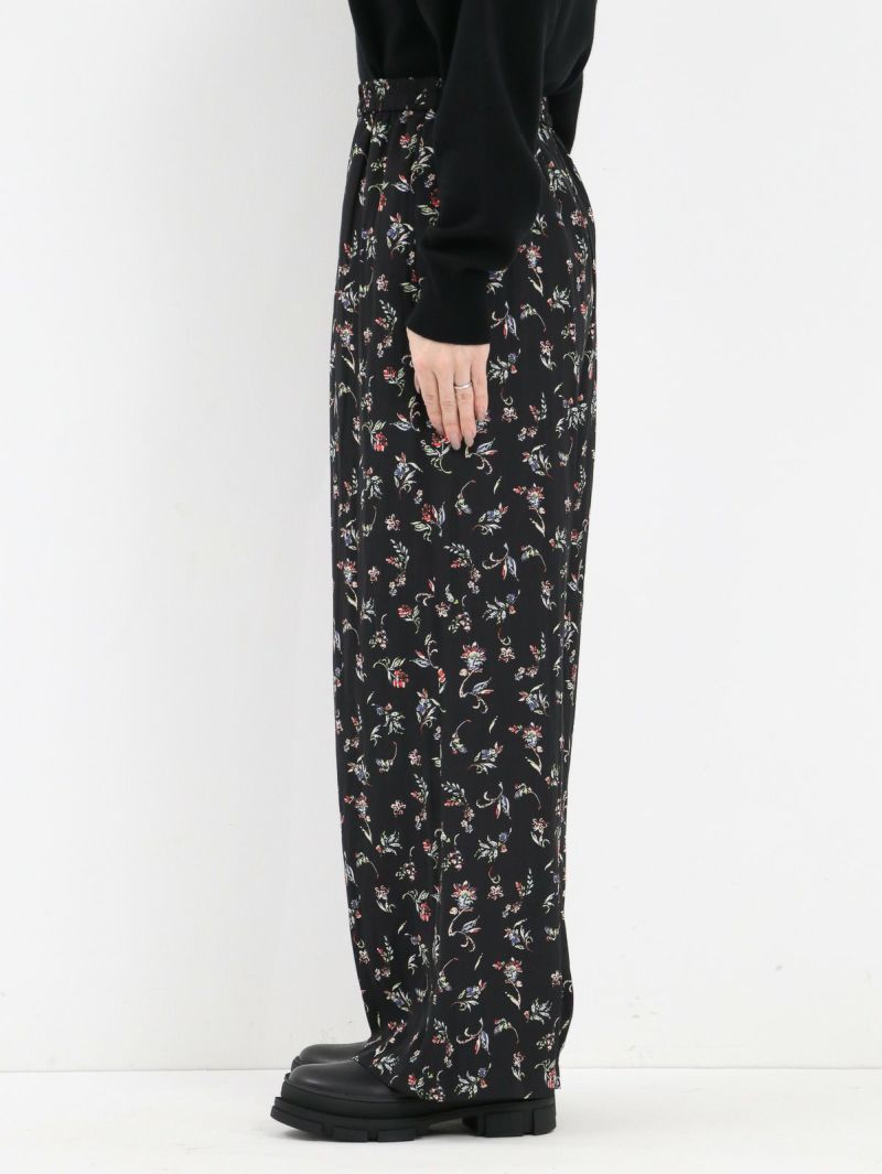 自然なツヤとしわ感が魅力のプリントセミワイドパンツ。 丁度良い落ち感で、シルエットが綺麗に映ります。ブラックと小花柄のコントラストで大人かわいいパンツコーデが楽しめます。