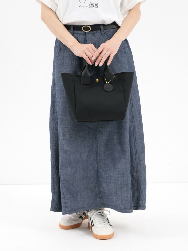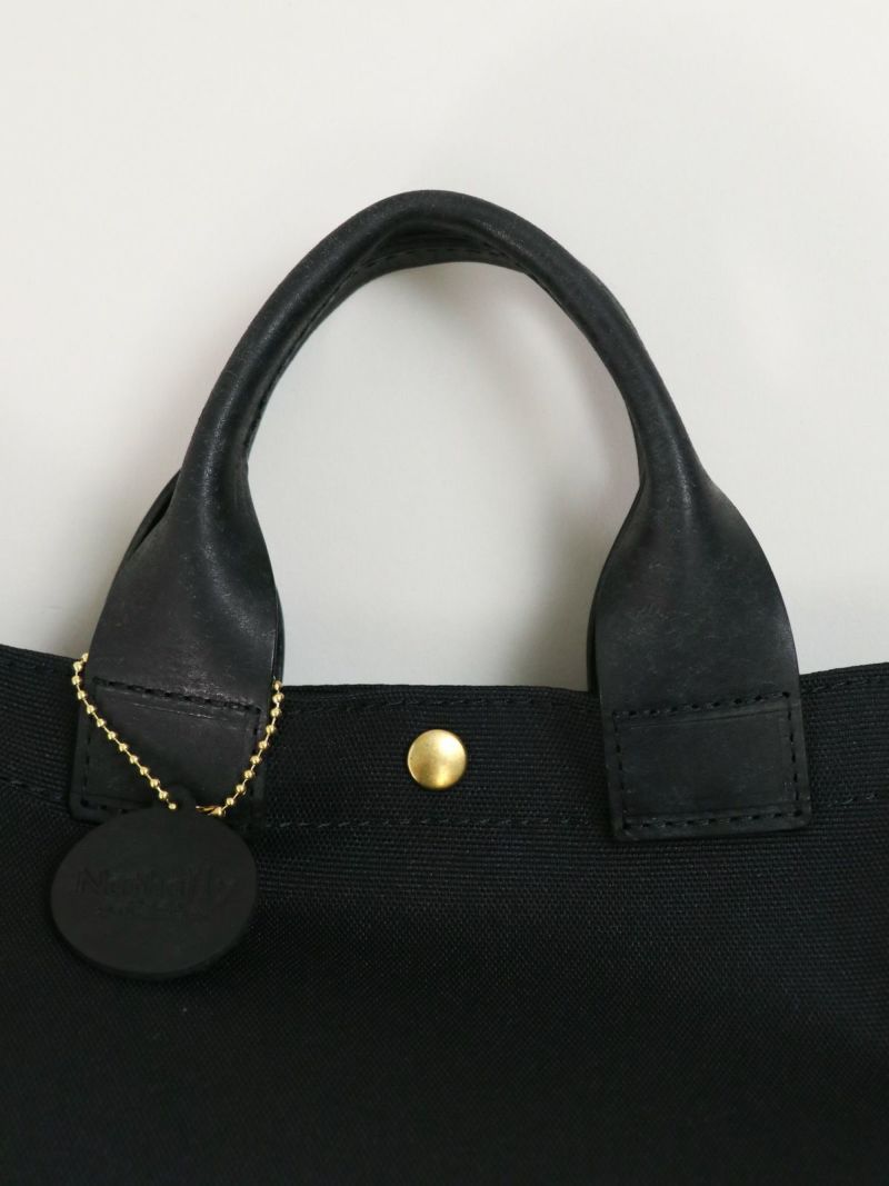 ちょこっと持ちに大活躍のtan tan別注バッグ。 軽くて耐久性に優れたコーデュラナイロン。ハンドル部分は使うたびに風合いの増すプエブロレザーを使用。バッグの中身が見えないようスナップボタン付いているのが嬉しいポイント。黒はどんなコーディネートにもマッチするのでこれ一つあれば間違い無しのアイテムです。