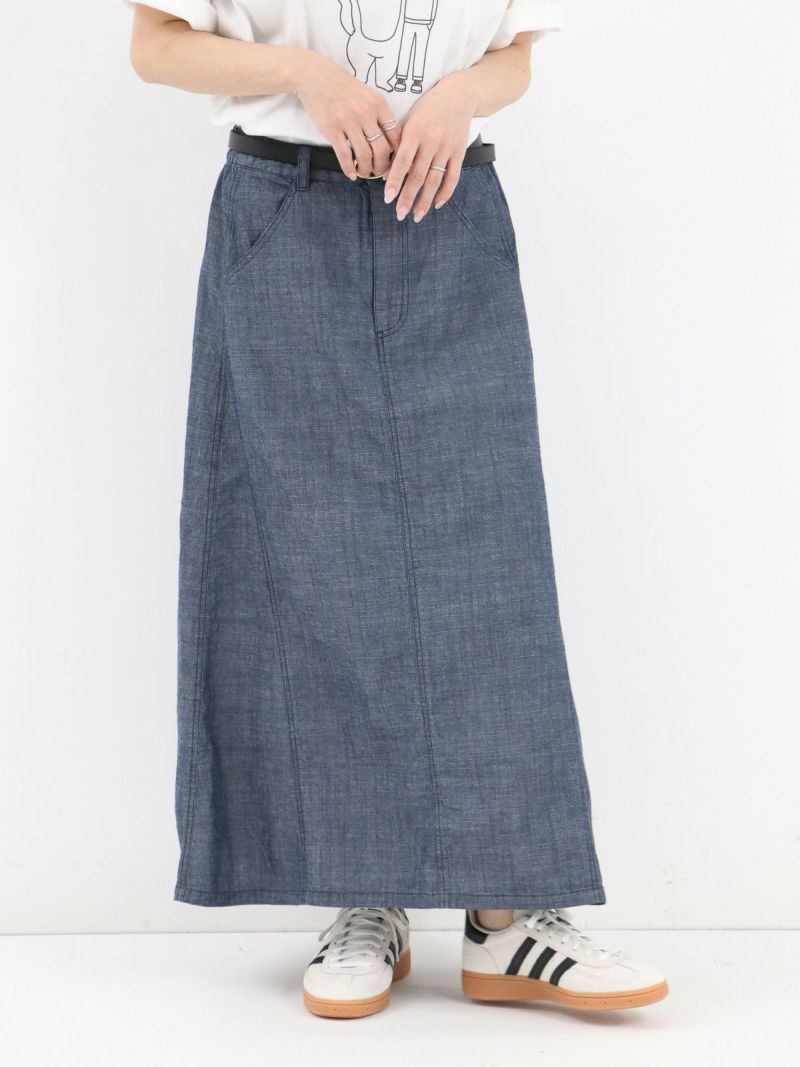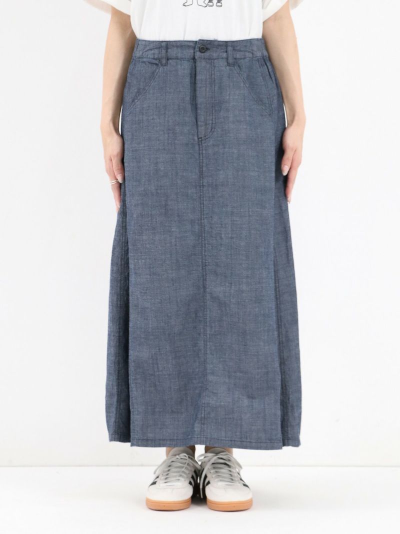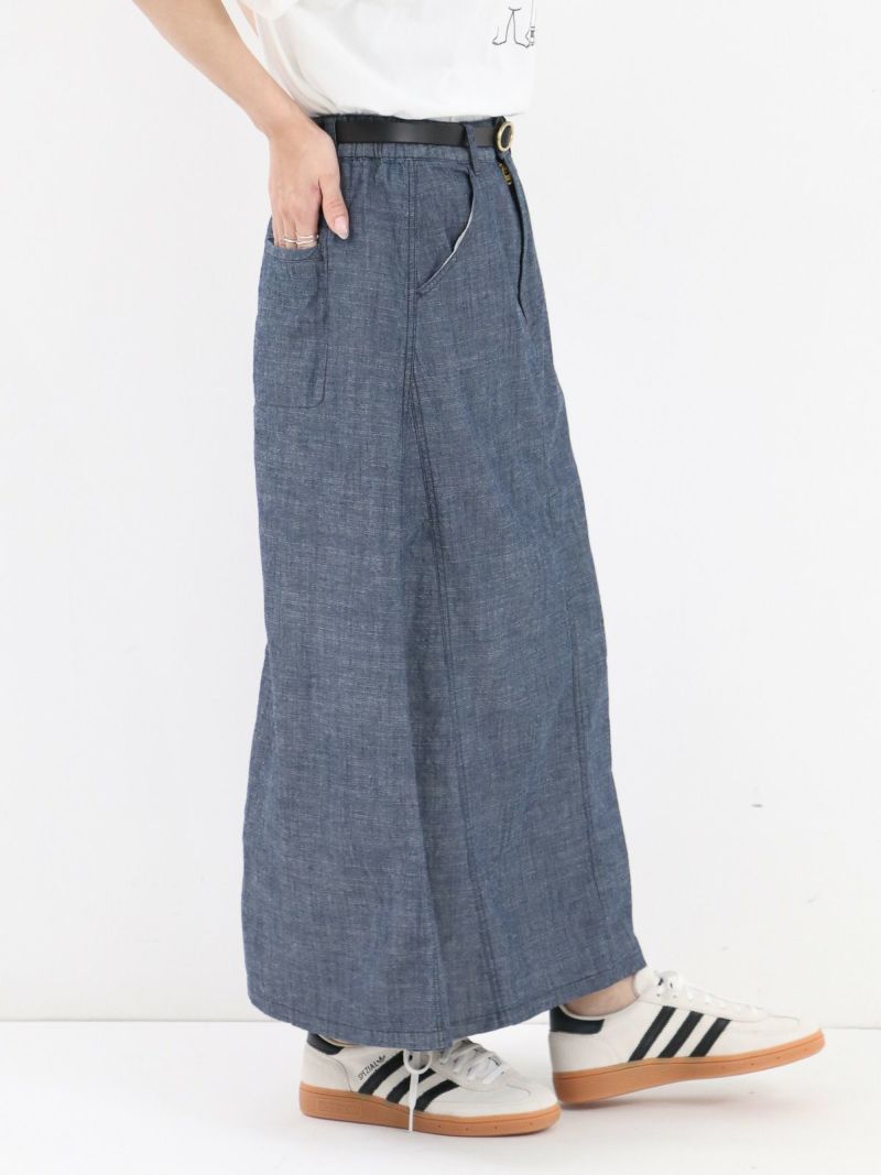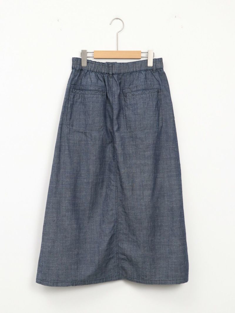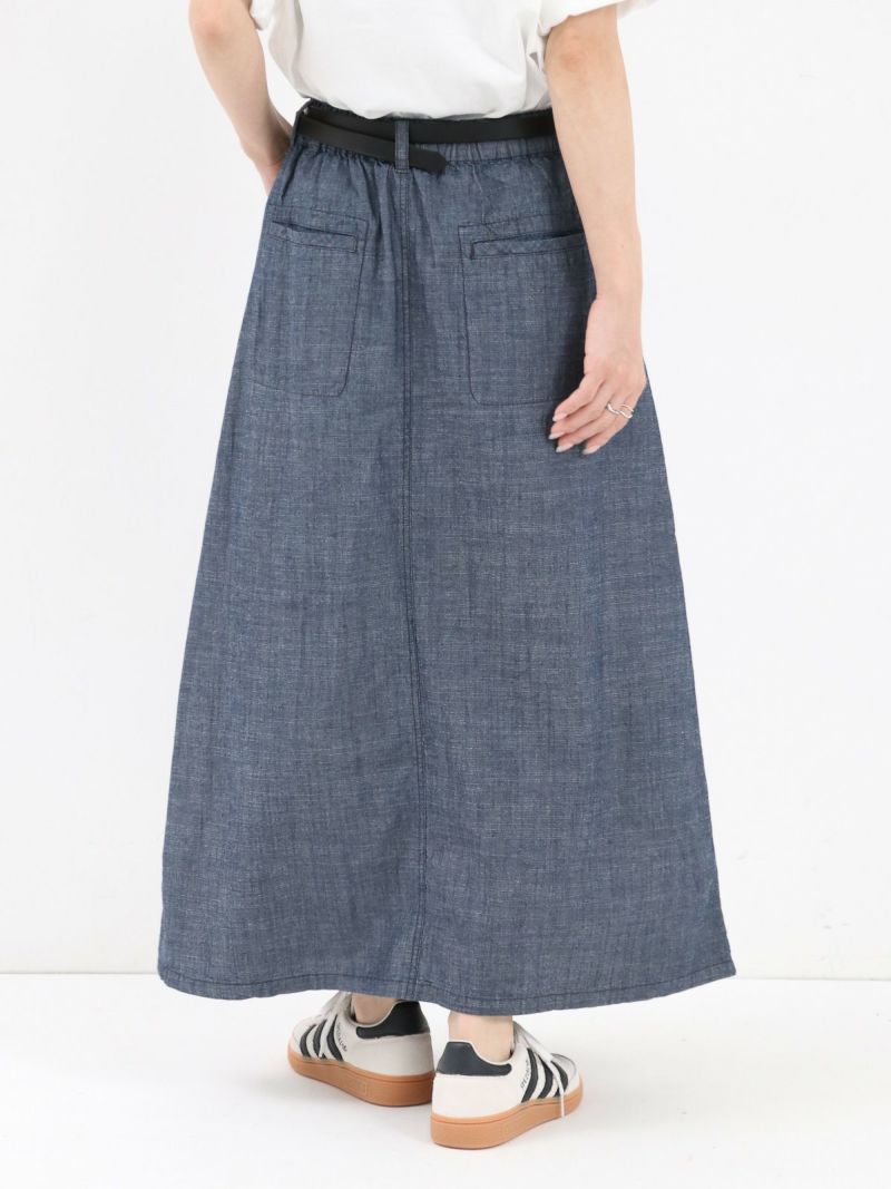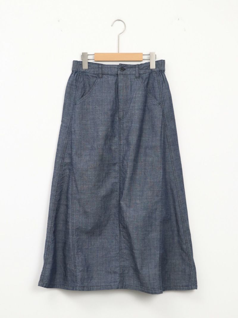 軽やかな風合いのシャンブレー素材のデニムライクなマチ入りスカート。 ほどよく広がるAラインにマチを加える事で自然な立体感をプラス。通気性がよく、肌にまとわりつかないので夏でも涼しく快適に着用していただけます。