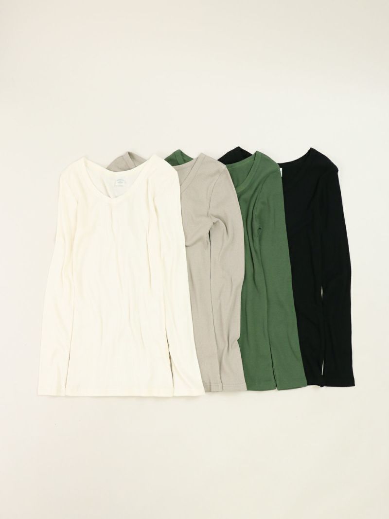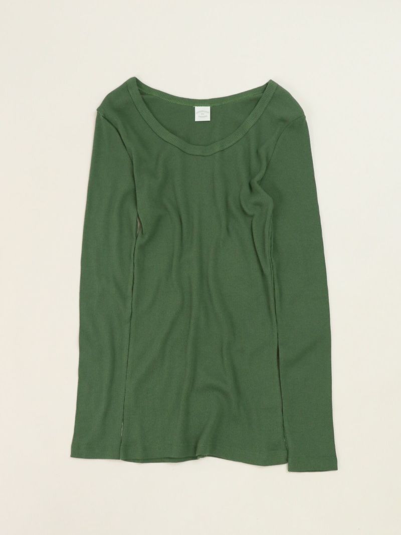 スタンダードなクルーネックカットソー。 コットンテレコ素材で柔らかく、伸縮性あるソフトな肌触り。肌寒い季節の重ね着にも活躍してくれます 。日常着にぴったりな何枚も色違いで集めたくなるカットソーです。