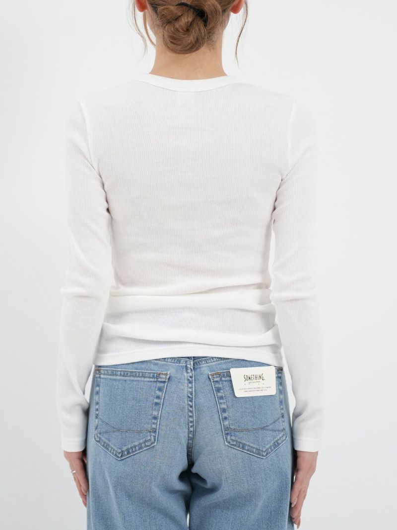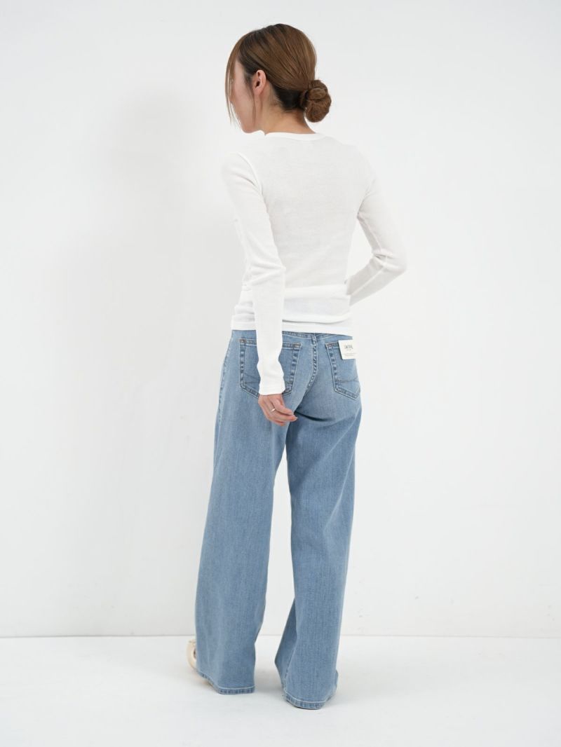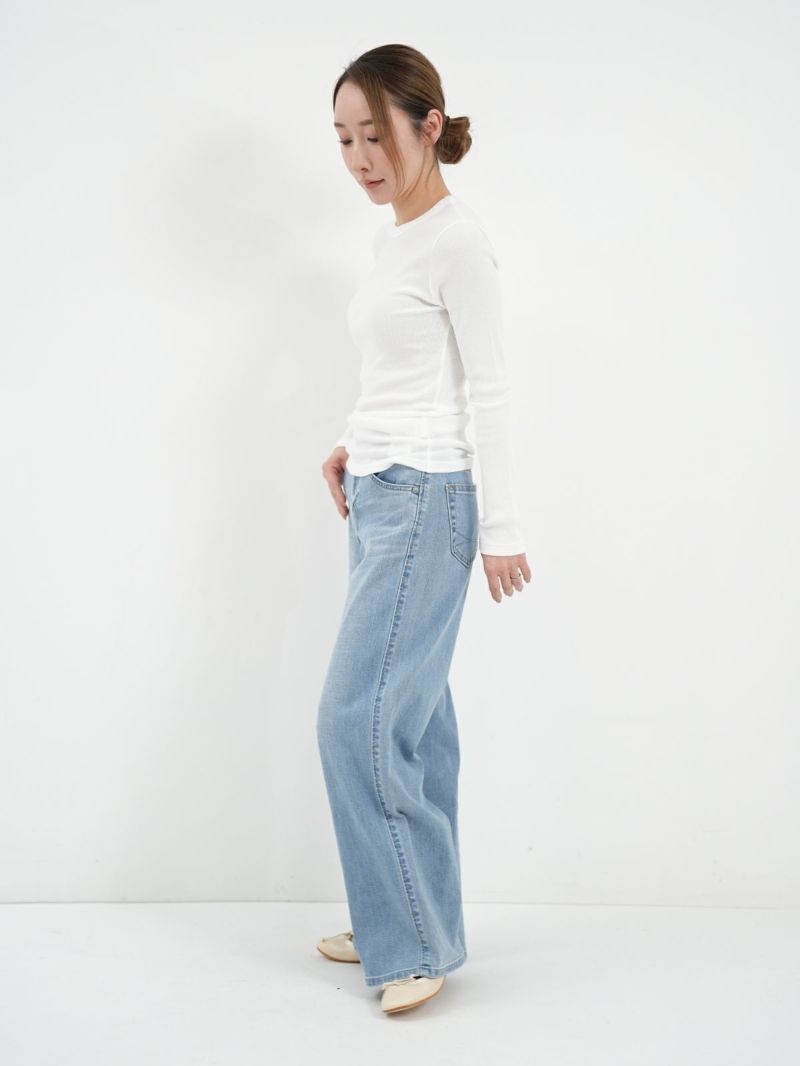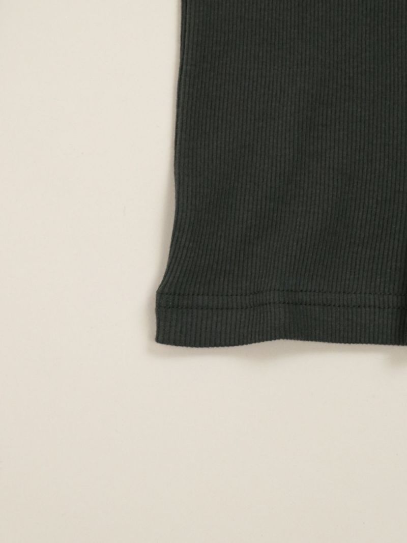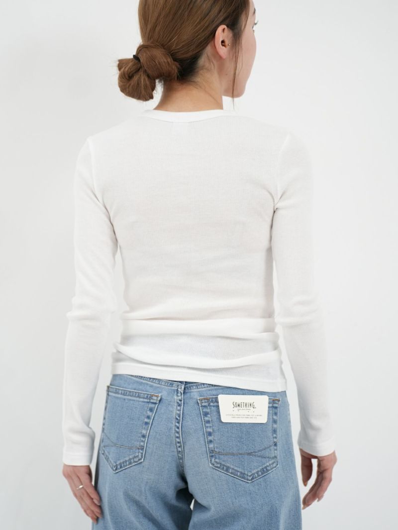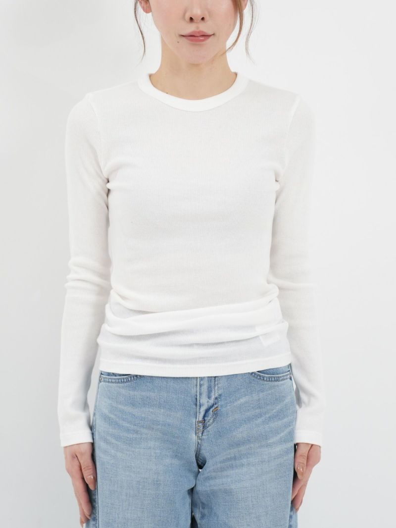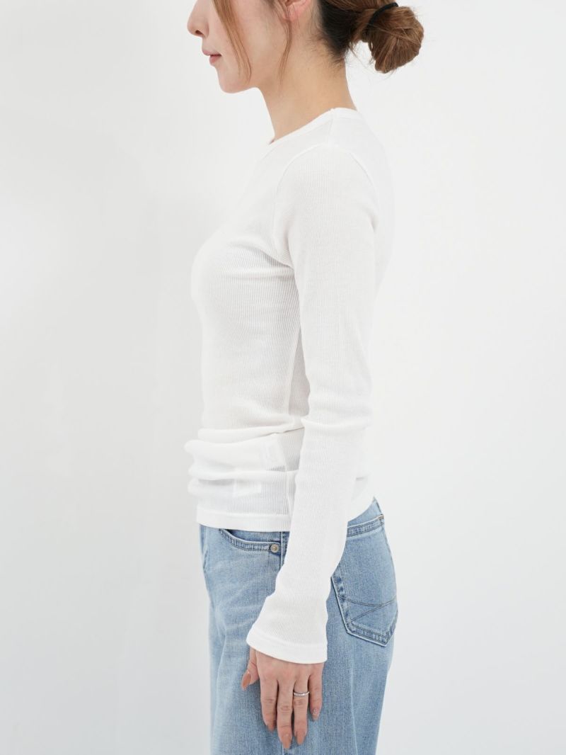 定番のテレコカットソー。 伸縮性があるので、身体に程よくフィットします。コットン100%のさらっとした肌触りが、素肌に優しく着心地の良い一枚です。首元が空きすぎないところもポイントです。