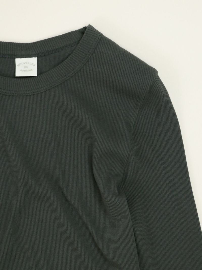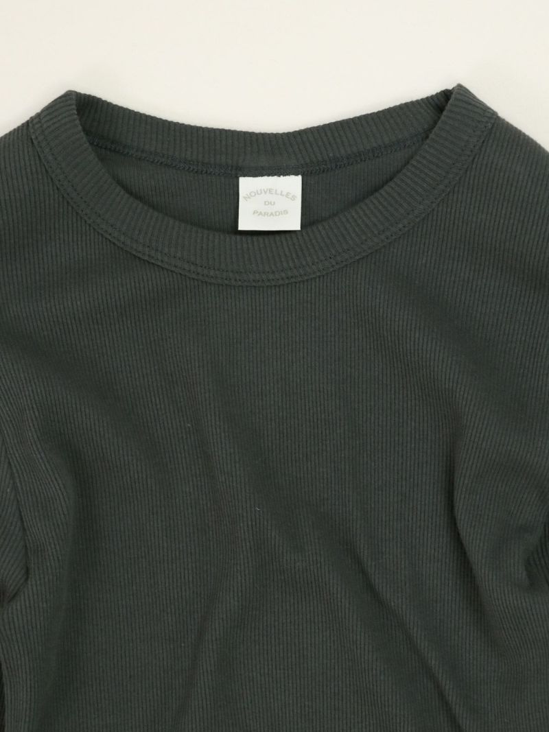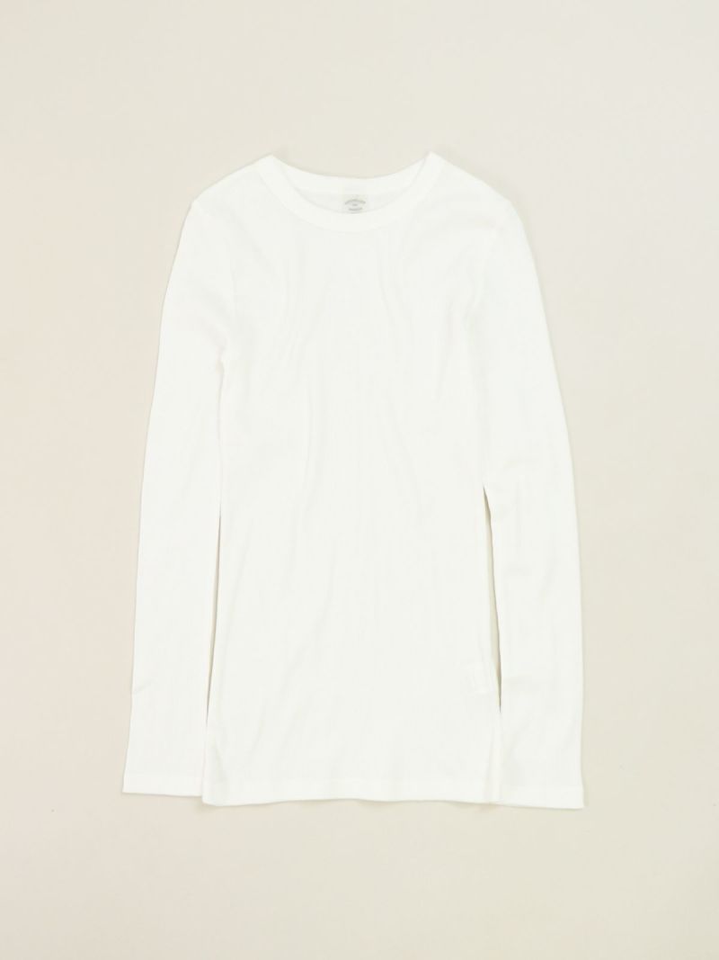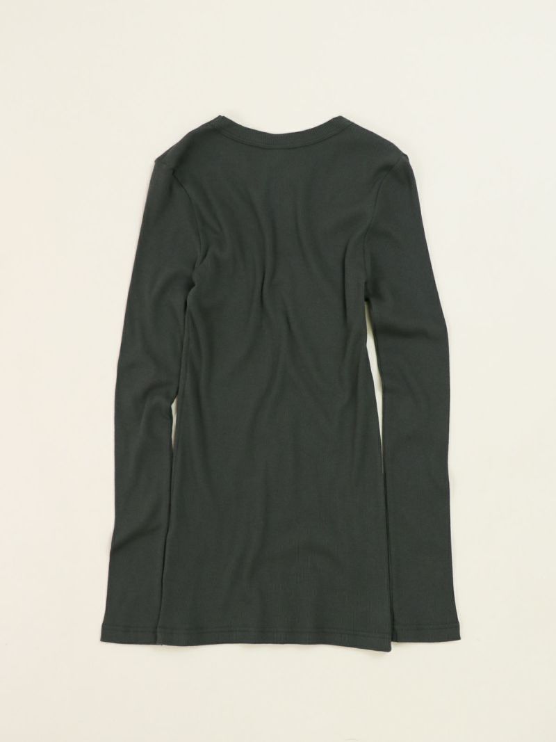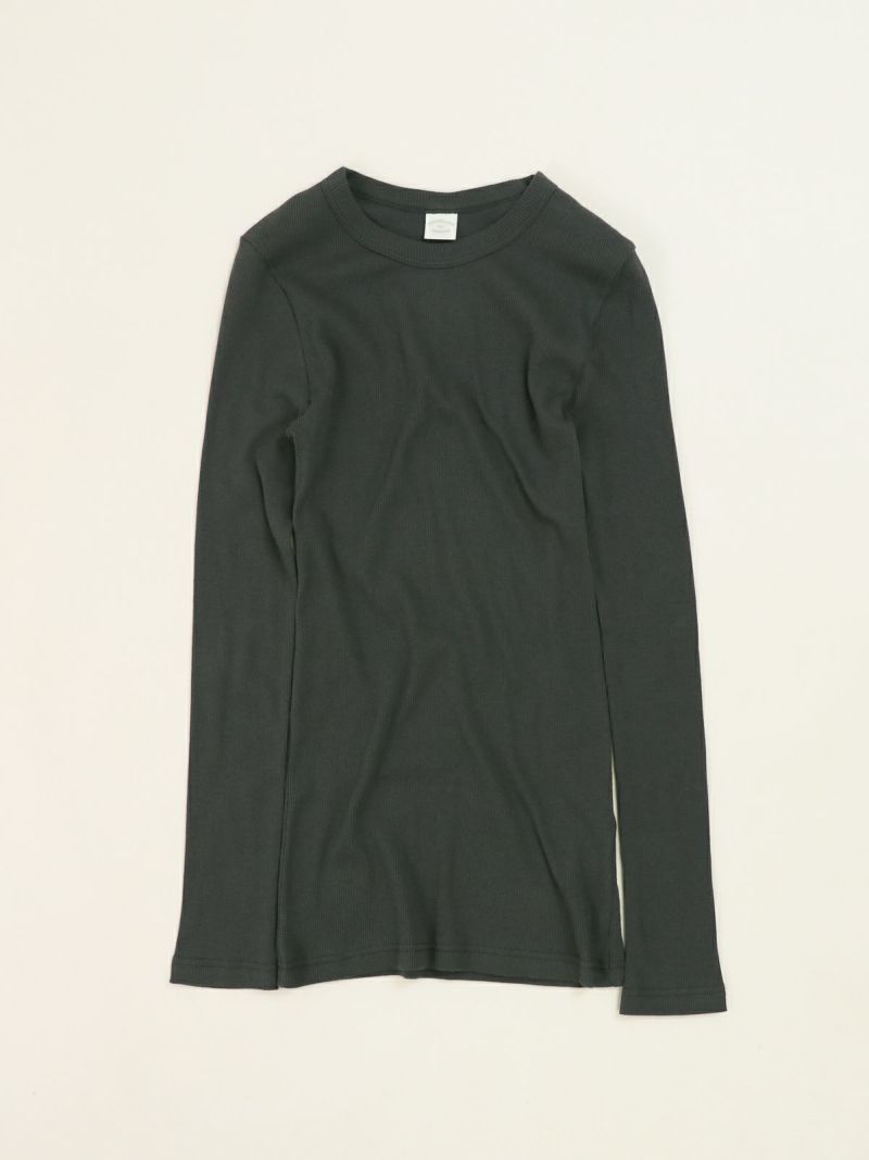 定番のテレコカットソー。 伸縮性があるので、身体に程よくフィットします。コットン100%のさらっとした肌触りが、素肌に優しく着心地の良い一枚です。首元が空きすぎないところもポイントです。