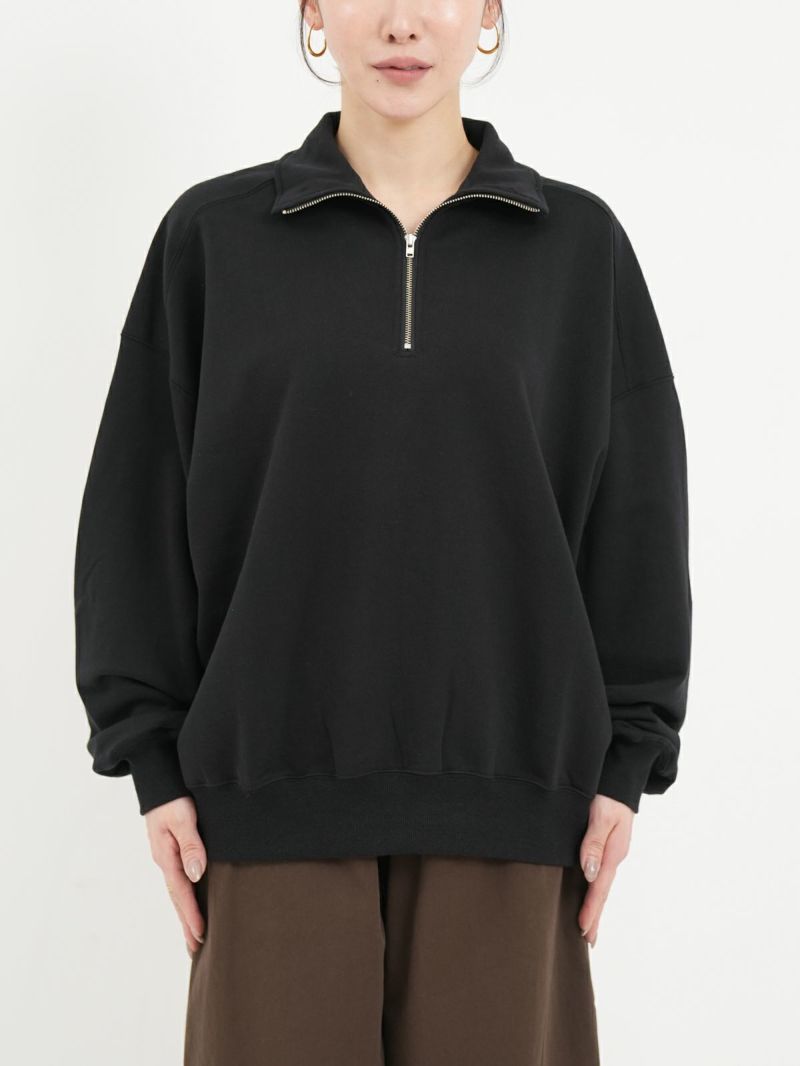 ユニセックスで着れるビックシルエットのハーフジップスウェット。 綿100%で弾力とストレッチ性を兼ね備えてます。また触り心地が良くふっくらとした仕上がりになっております。