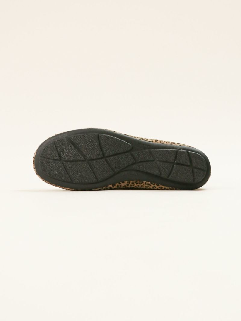 短く起毛したハラコ風のアッパーに存在感のあるレオパード柄をプリントしたバレエシューズ。 足元を一気に華やかにし、シンプルなコーディネートのアクセントとして活躍します。内側部分は暖かく柔らかな素材で、秋冬シーズンに最適な履き心地です。