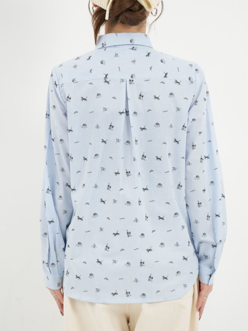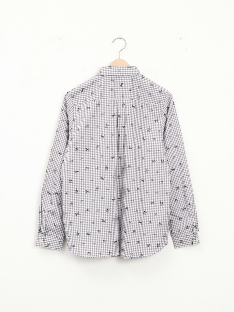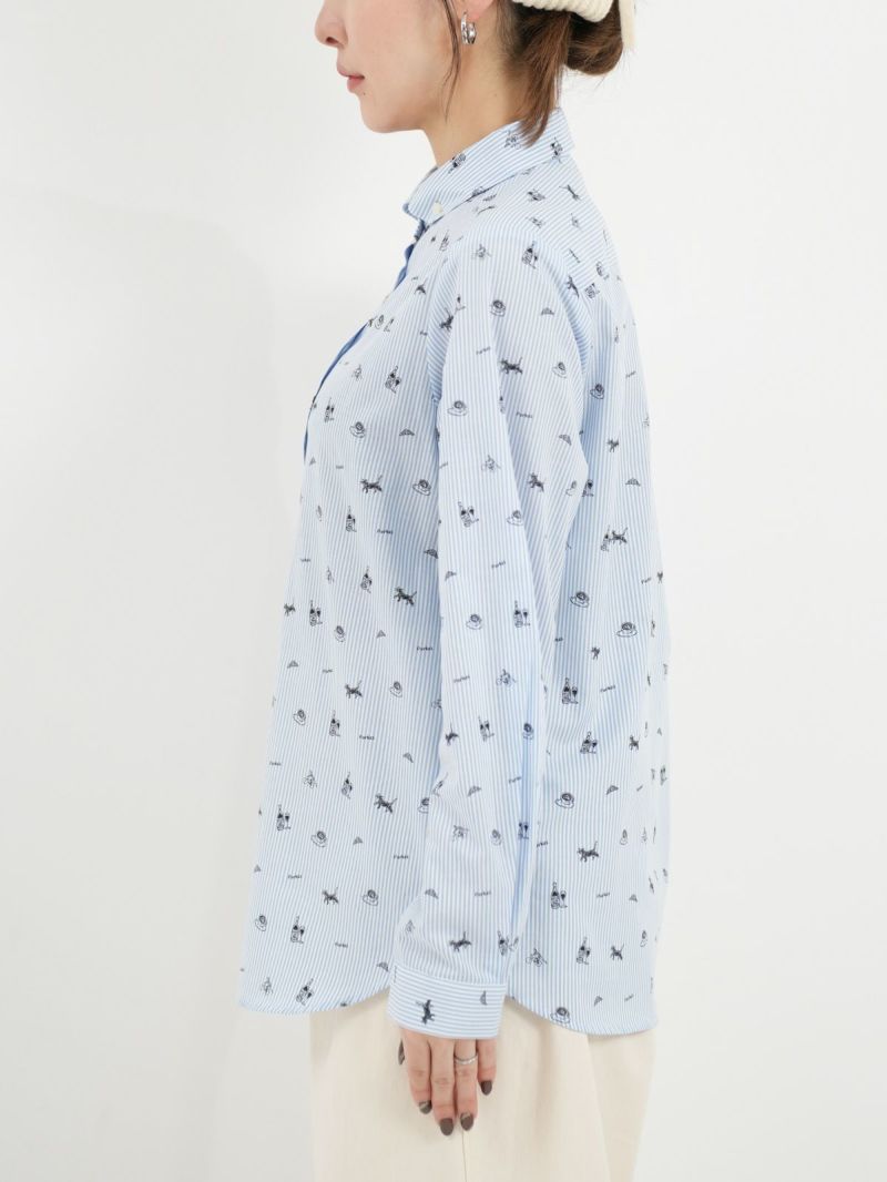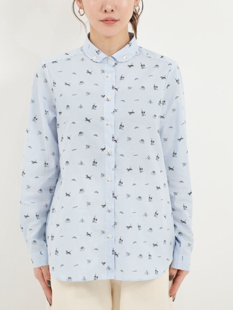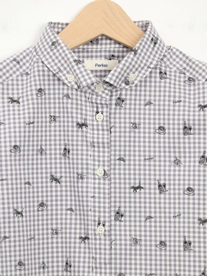 ボタンダウンなのに丸襟の珍しいシャツ。 これからのシーズン、カーディガンやベストのインナーにも。合わせやすい柔らかい素材です。ブルーはストライプ、グレーはギンガムに小さくプリントされた可愛い柄がおすすめのポイントです。