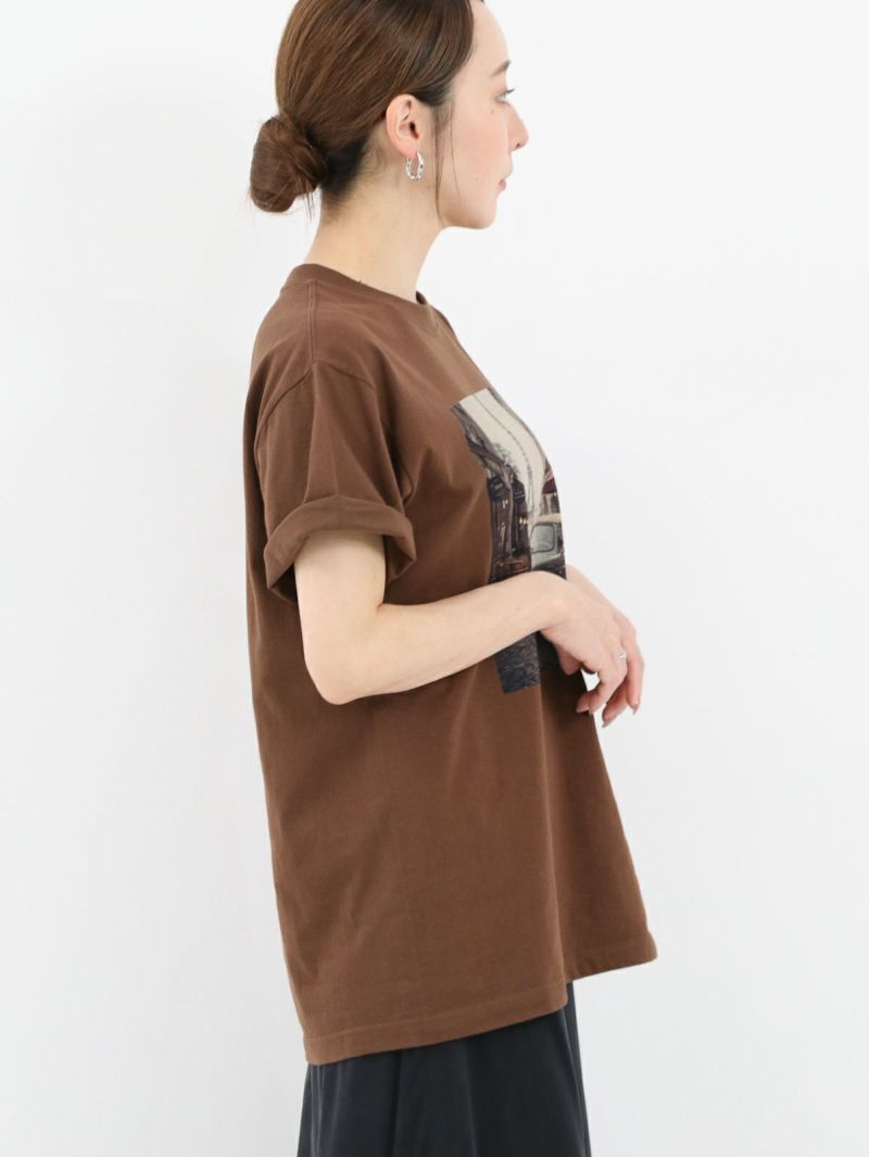 大人カジュアルにぴったりな フォトプリントTシャツ。 1枚でもサマになり、派手すぎないカラーなのでどんなスタイルにもなじみやすいです。ベストやジレなどを上から羽織るのもおすすめです。