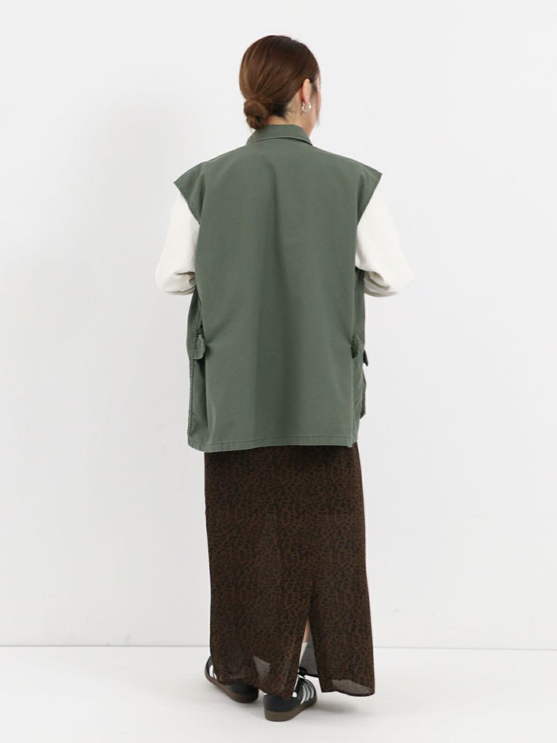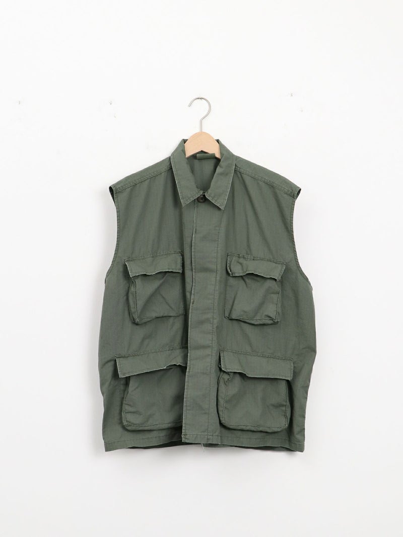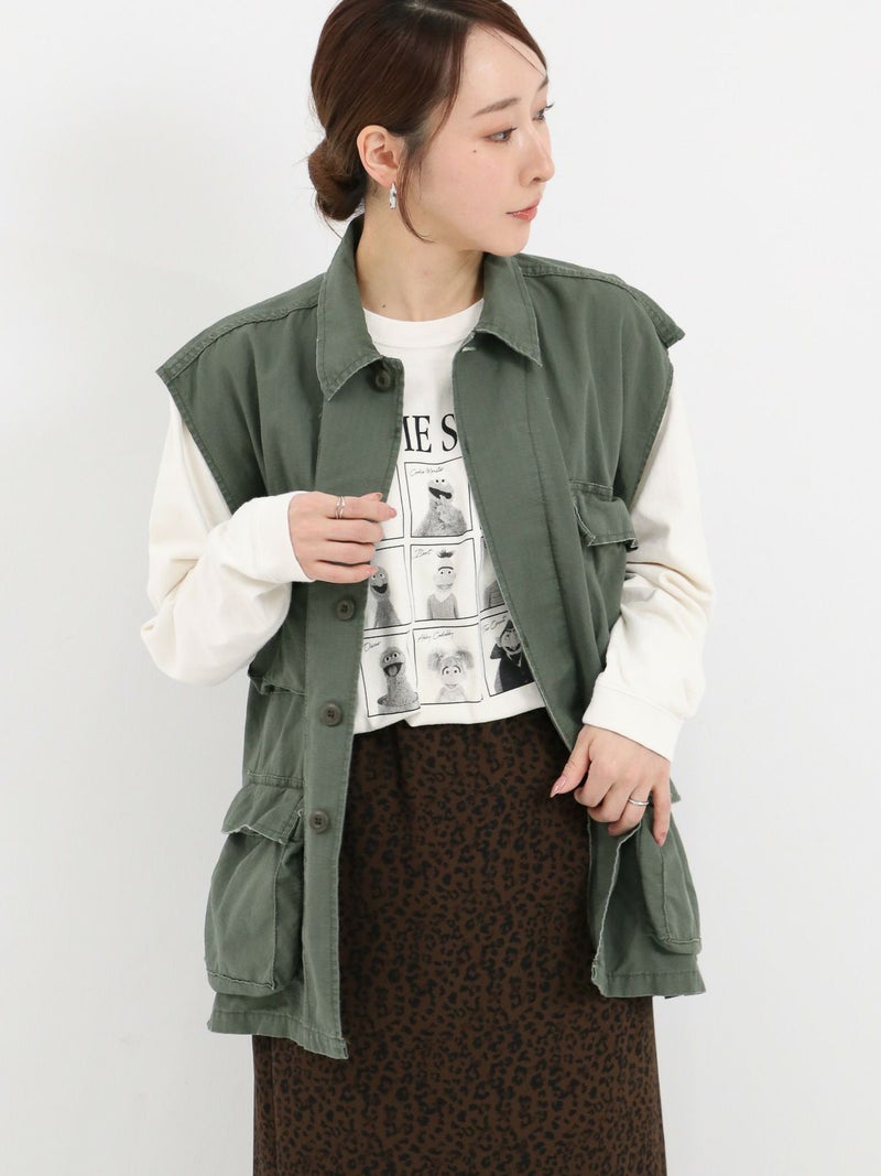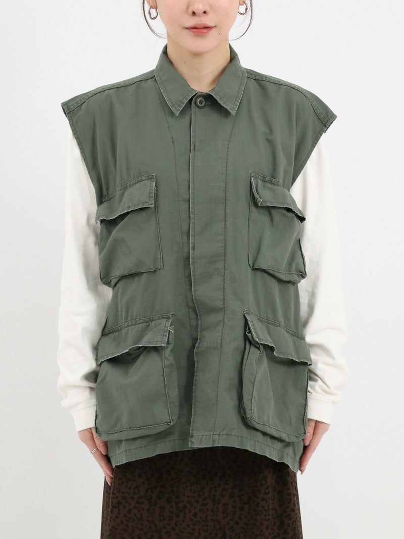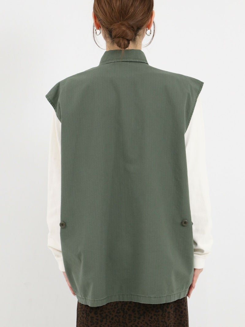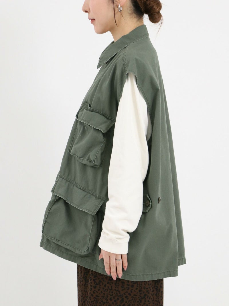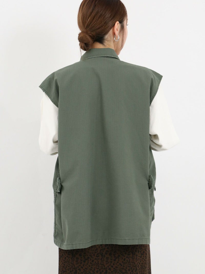 ROTHCOのミリタリーベスト。 ヴィンテージな雰囲気と柔らかい素材で落ち感もあるのでフレアスカートやワンピースなどボリュームのあるボトムスとも相性抜群です。
