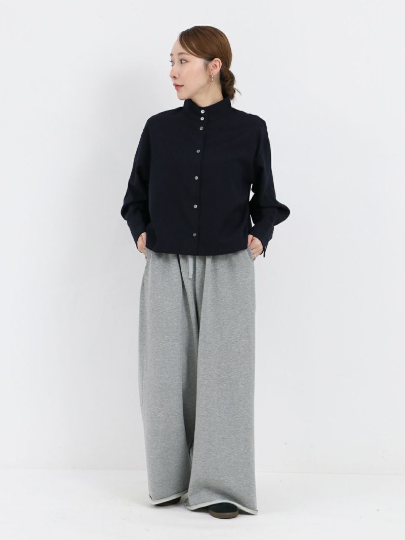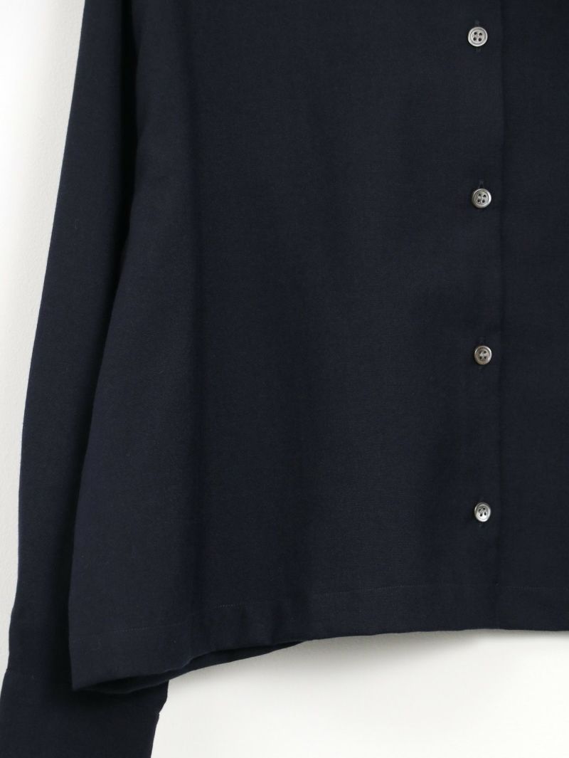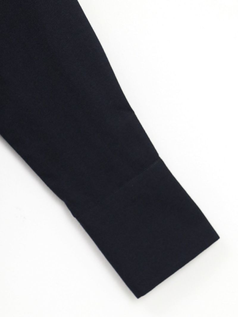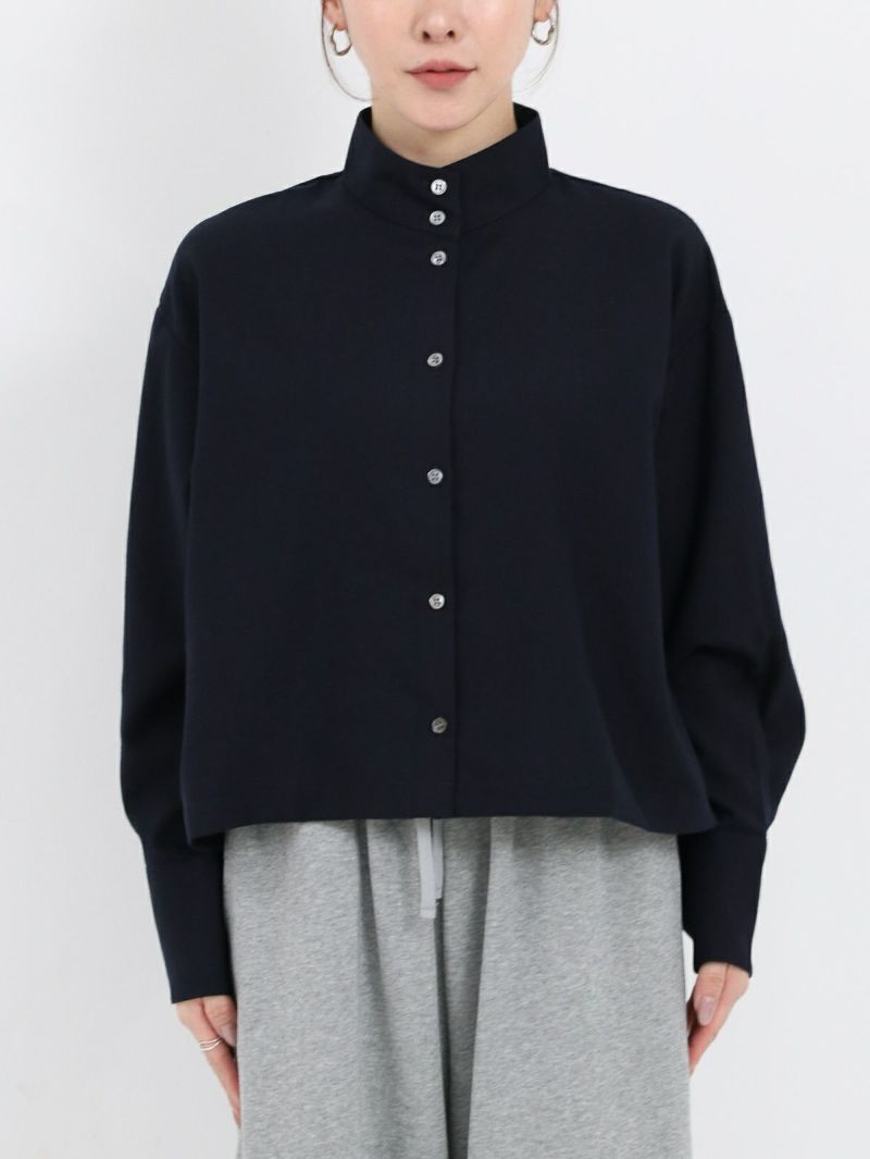 平織りサマーウールのSETTO定番オッカケシャツ。 クラシカルな雰囲気のスタンドカラーに、風を取り込むようなボックスシルエット。 身幅を広めにとった、ほどよくゆとりのあるフォルムが特徴です。短めの着丈と、長めのカフスがアクセントになり、全体のバランスにメリハリを。シンプルながら、細かなディテールにもこだわった一枚です。