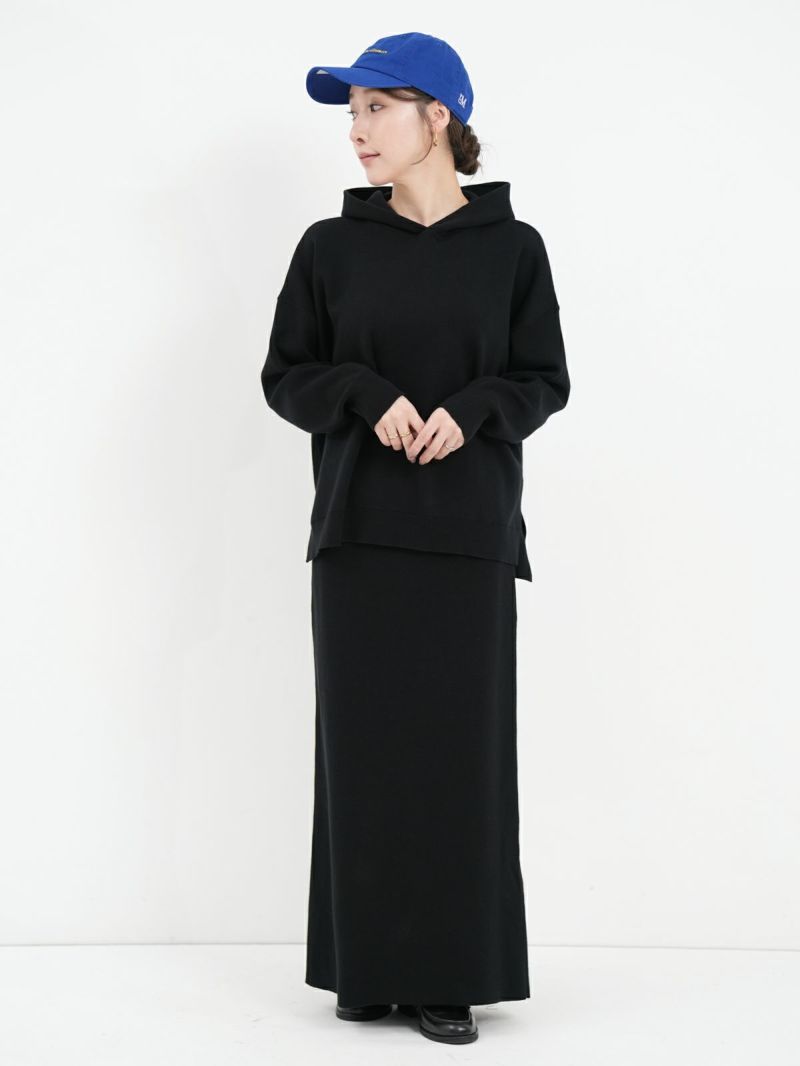 コットンのミラノリブニットスカート。 程よい厚みとハリ感がありカジュアルすぎないのでトップスに合わせる素材も選ばずにスタイリングを楽しんでいただけます!