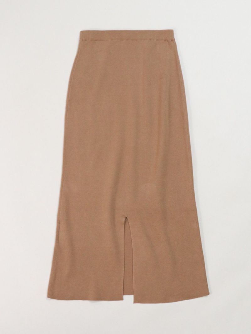 コットンのミラノリブニットスカート。 程よい厚みとハリ感がありカジュアルすぎないのでトップスに合わせる素材も選ばずにスタイリングを楽しんでいただけます!