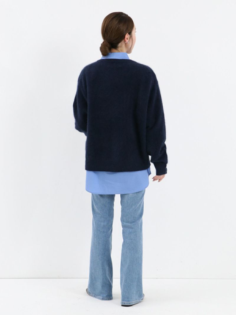 高品質のラクーン糸を使用した贅沢なニット。 ふんわりと柔らかな肌触りで、とても暖かく、軽やかな着心地です。また、ナイロン糸をブレーディングすることで毛が抜けにくく、もっちりとした風合いに仕上げています。秋冬のカジュアルスタイルを格上げする、シンプルで洗練されたタイムレスに愛用していただける一枚となっています。