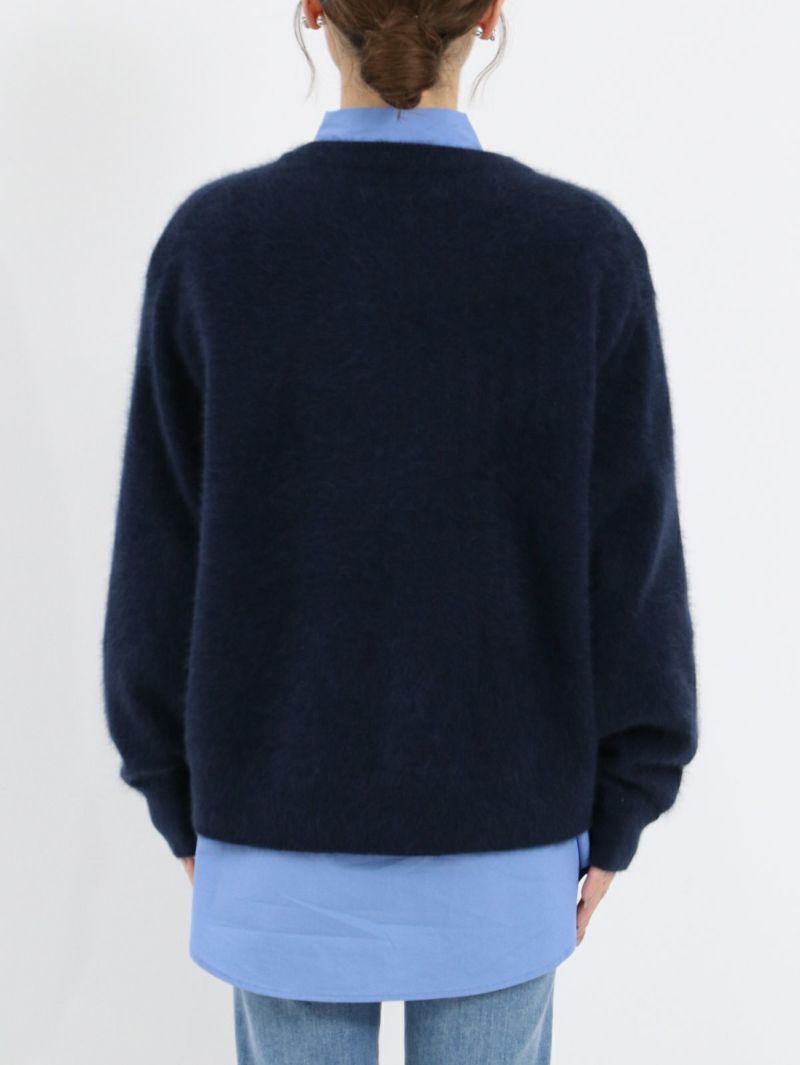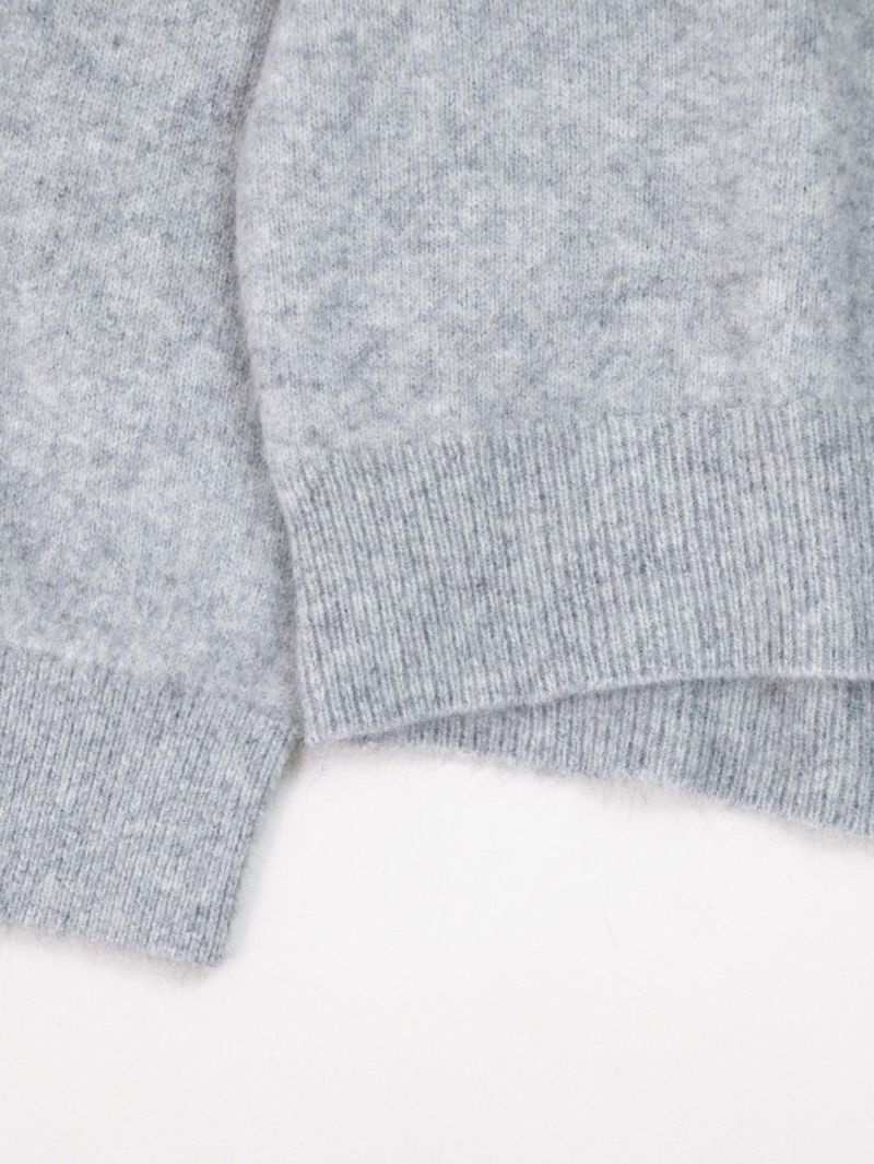 高品質のラクーン糸を使用した贅沢なニット。 ふんわりと柔らかな肌触りで、とても暖かく、軽やかな着心地です。また、ナイロン糸をブレーディングすることで毛が抜けにくく、もっちりとした風合いに仕上げています。秋冬のカジュアルスタイルを格上げする、シンプルで洗練されたタイムレスに愛用していただける一枚となっています。