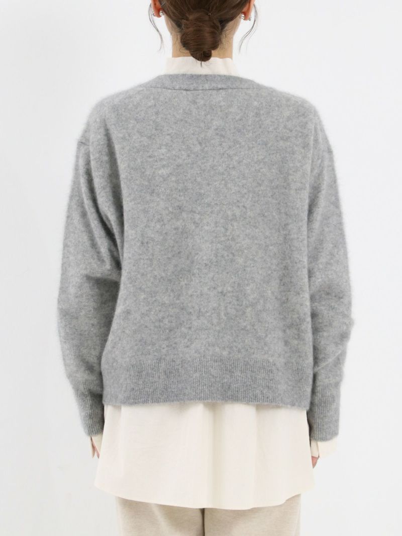 高品質なラクーン糸を使用した贅沢なニットカーディガン。 ふんわりと柔らかな肌触りで、とても暖かく軽やかな着心地です。ナイロン糸をブレーディングすることで毛が抜けにくく、もっちりとした風合いに仕上げています。