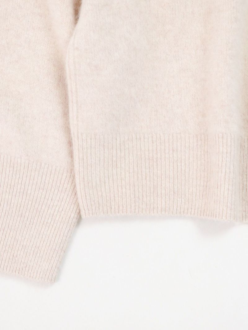 高品質なラクーン糸を使用した贅沢なニットカーディガン。 ふんわりと柔らかな肌触りで、とても暖かく軽やかな着心地です。ナイロン糸をブレーディングすることで毛が抜けにくく、もっちりとした風合いに仕上げています。