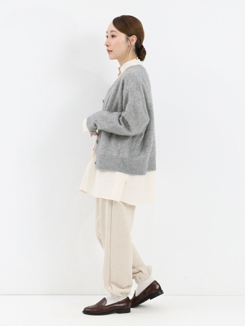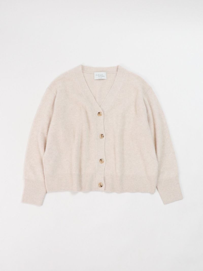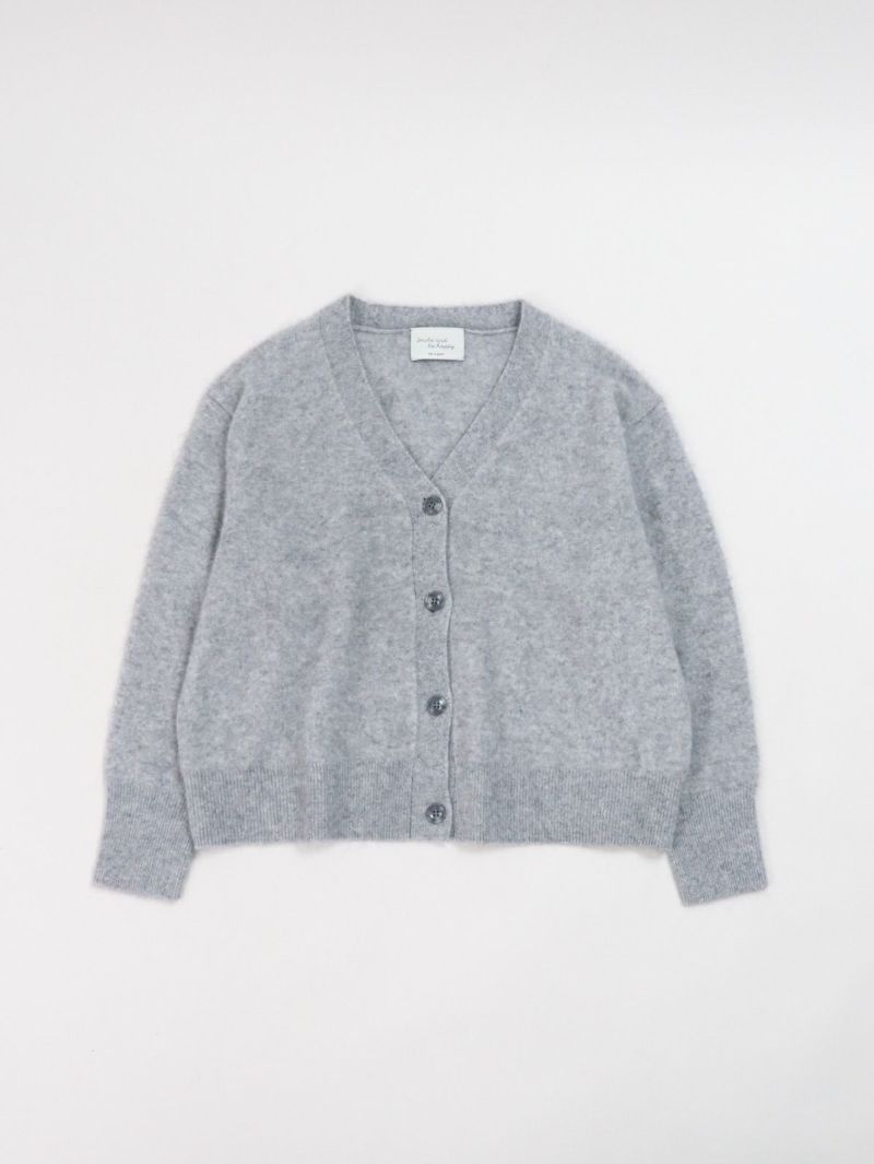高品質なラクーン糸を使用した贅沢なニットカーディガン。 ふんわりと柔らかな肌触りで、とても暖かく軽やかな着心地です。ナイロン糸をブレーディングすることで毛が抜けにくく、もっちりとした風合いに仕上げています。