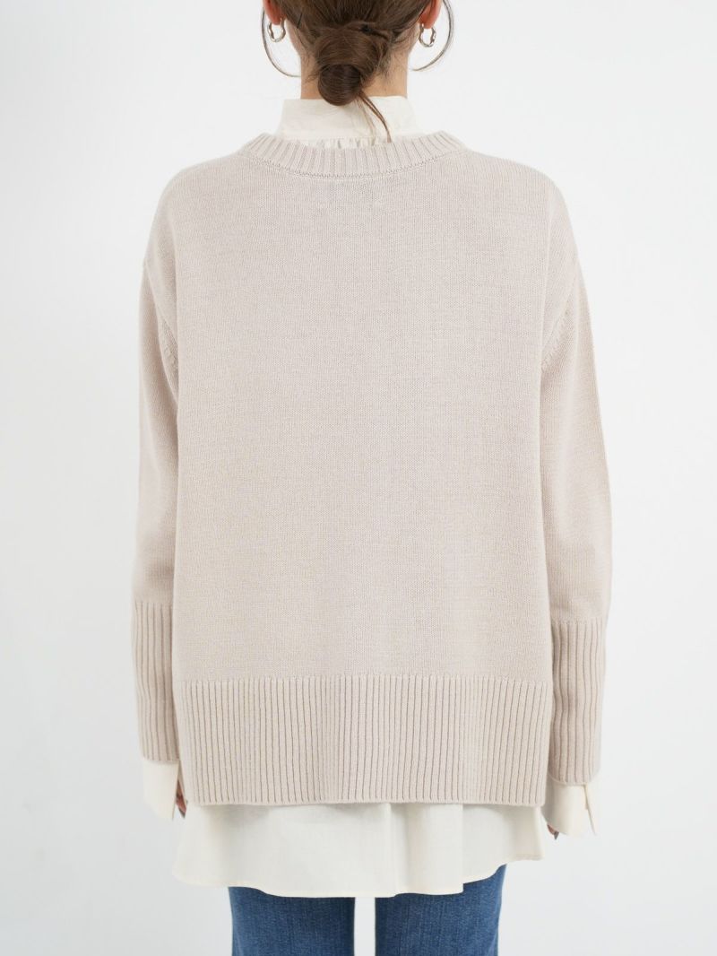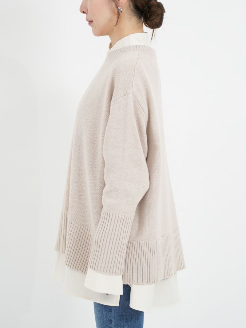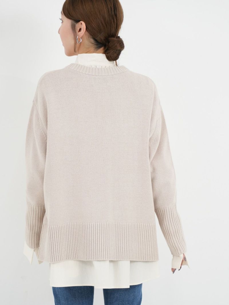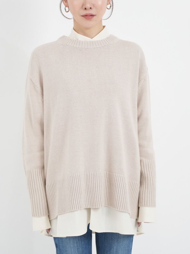 どんなスタイルにも合わせやすいベーシックなクルーネックプルオーバー。 袖口と裾のやや広めのリブ仕様がさりげないポイントです。 少し長めの丈ですっきり見えつつ体型カバーも叶う1枚です。