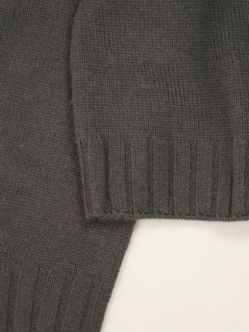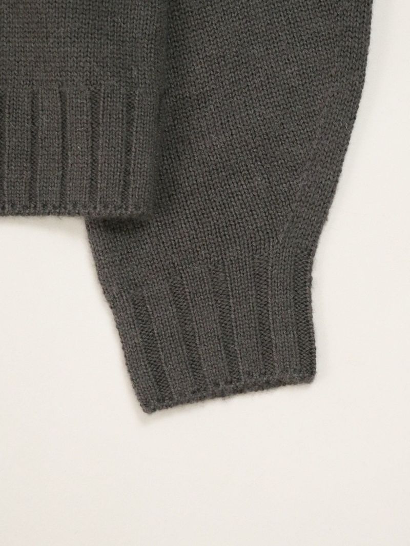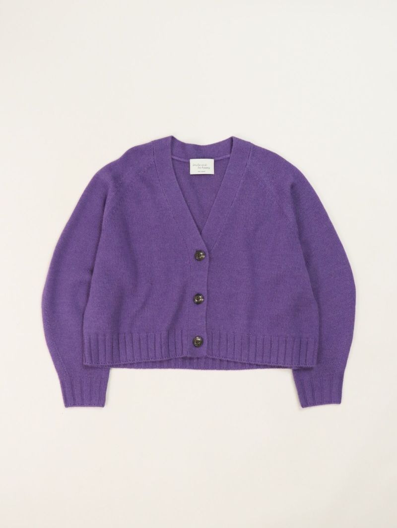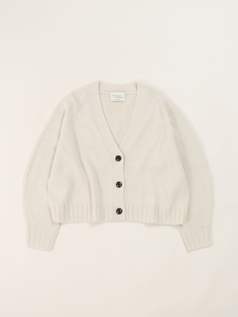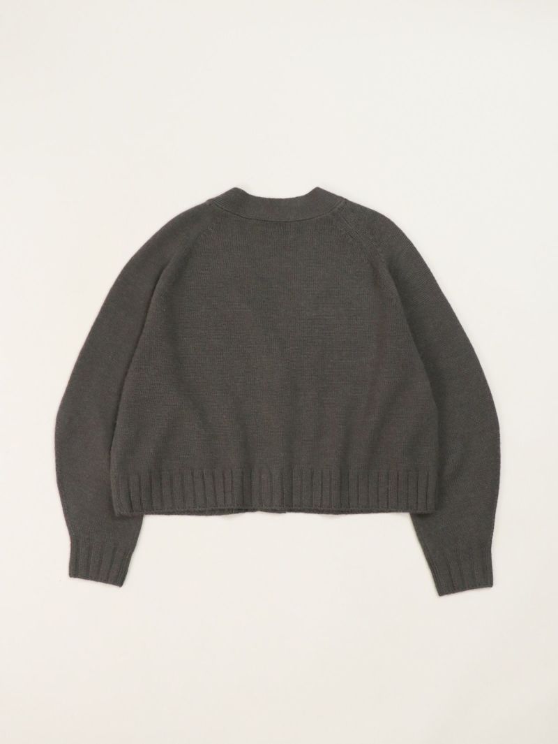 太めのリブがアクセントのVネックカーディガン。 ウールの暖かさとアクリルの軽さをバランスよく組み合わせたバルキー糸を使用。袖口と裾の太めのリブが程よいデザインポイント。前立てのラインを強調することでスッキリとした印象に。カーディガンとしてはもちろん、ボタンを閉めてプルオーバー感覚での着こなしもオススメです。
