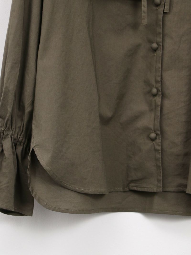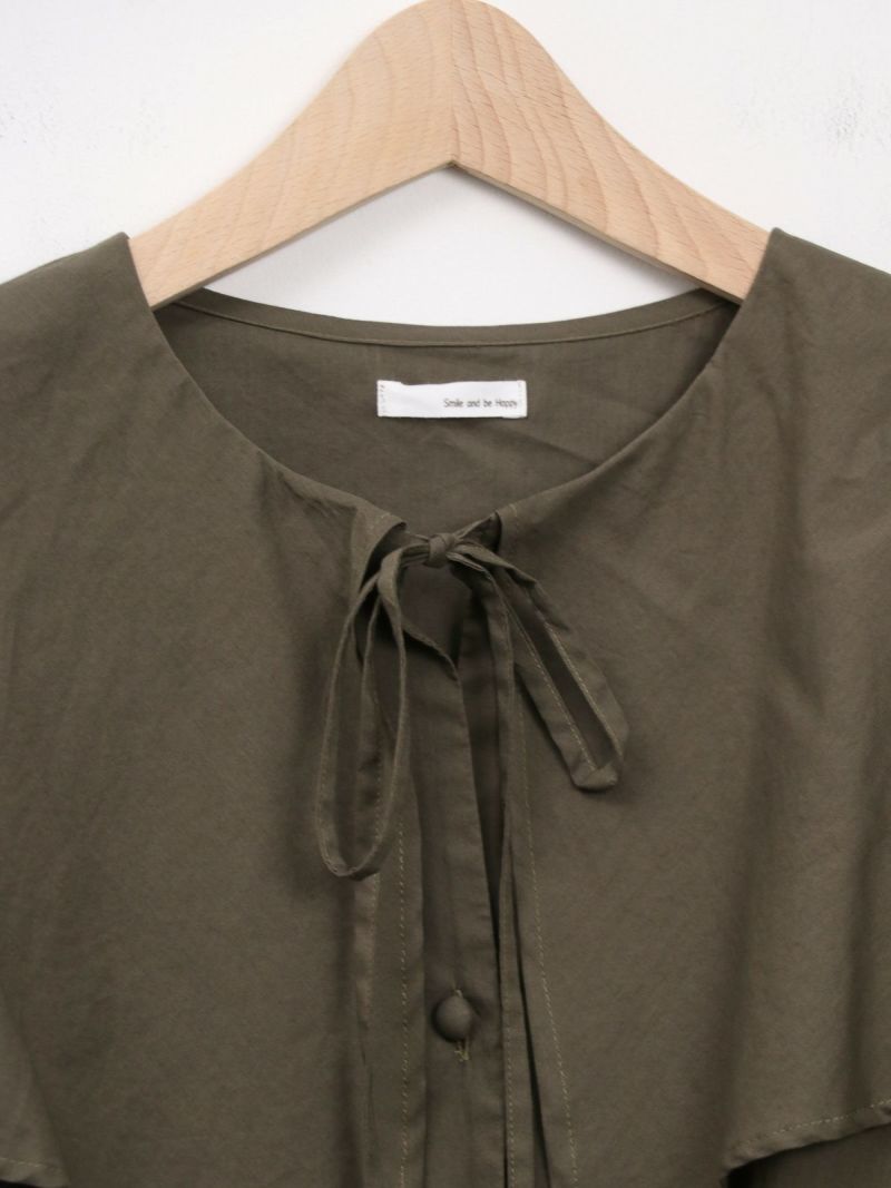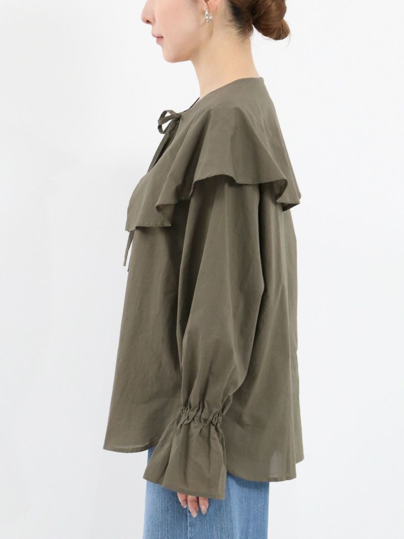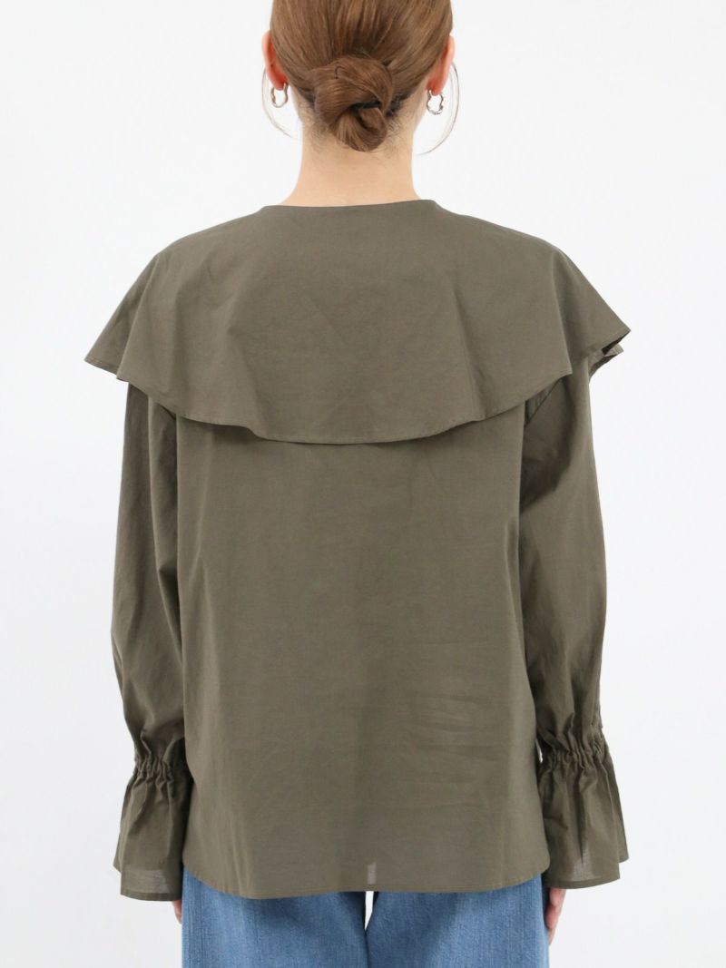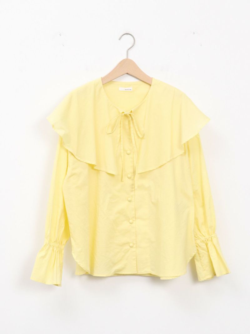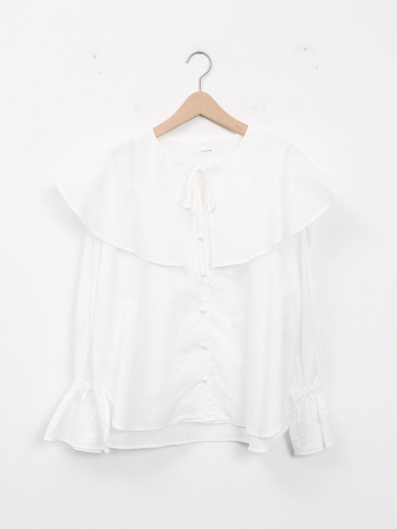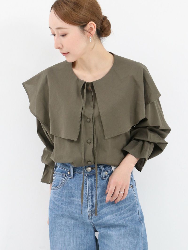 トレンドに左右されないデザインブラウス。 素材はコットン100%の柔らかな肌触りで、フリル部分も広がりすぎず程よいボリュームに。フロントボタンのころっとしたデザインもポイントです。
