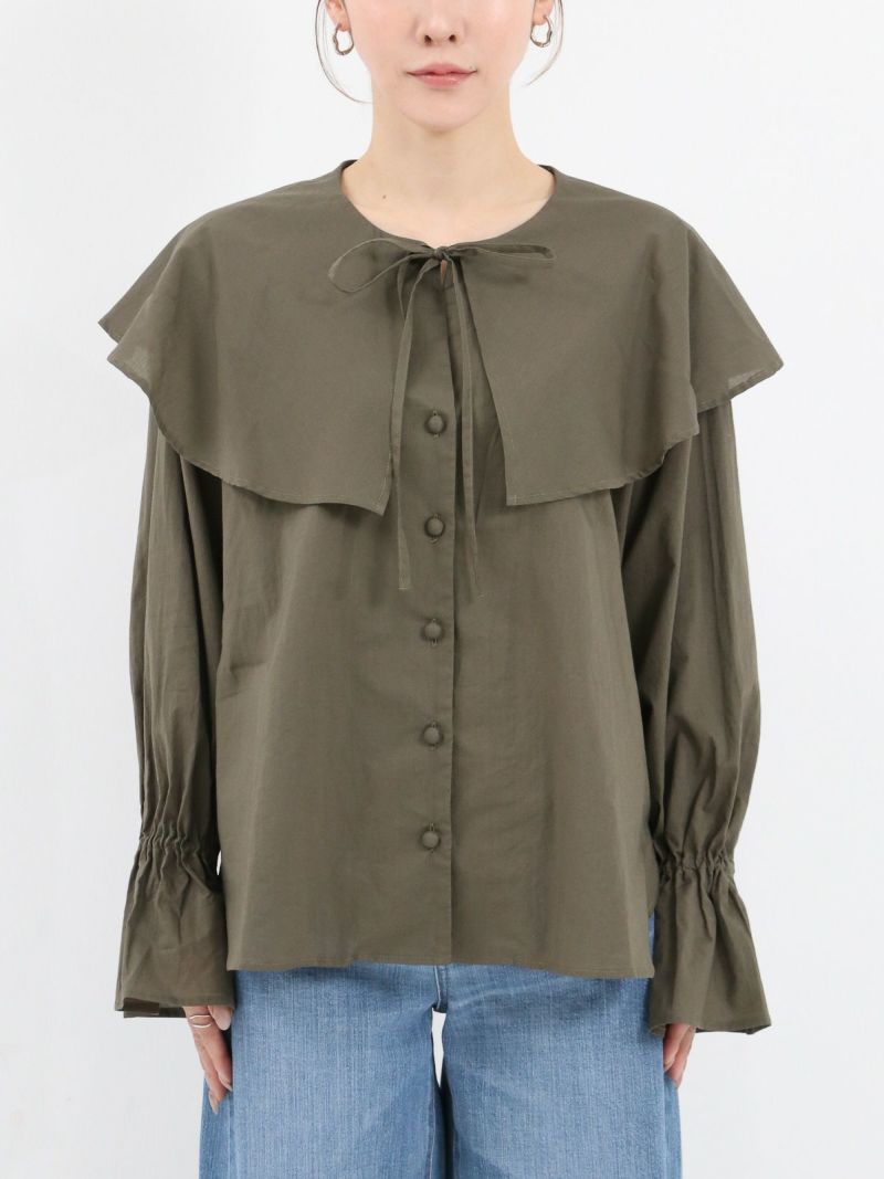 トレンドに左右されないデザインブラウス。 素材はコットン100%の柔らかな肌触りで、フリル部分も広がりすぎず程よいボリュームに。フロントボタンのころっとしたデザインもポイントです。