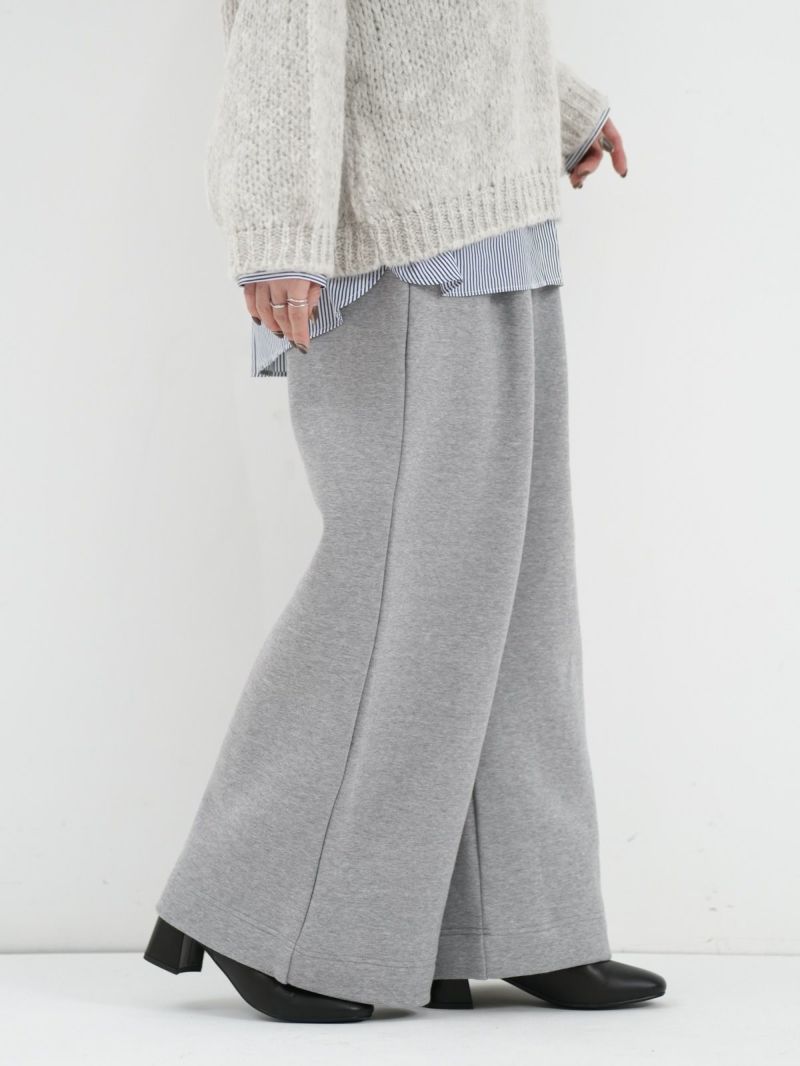 適度な厚みのある素材に裏起毛の温かい着心地のパンツ。 カジュアルにオーバーサイズのニットやスニーカー合わせはもちろん、ジャケットやヒールなどキレイ目アイテムの外しとしてもおすすめです。