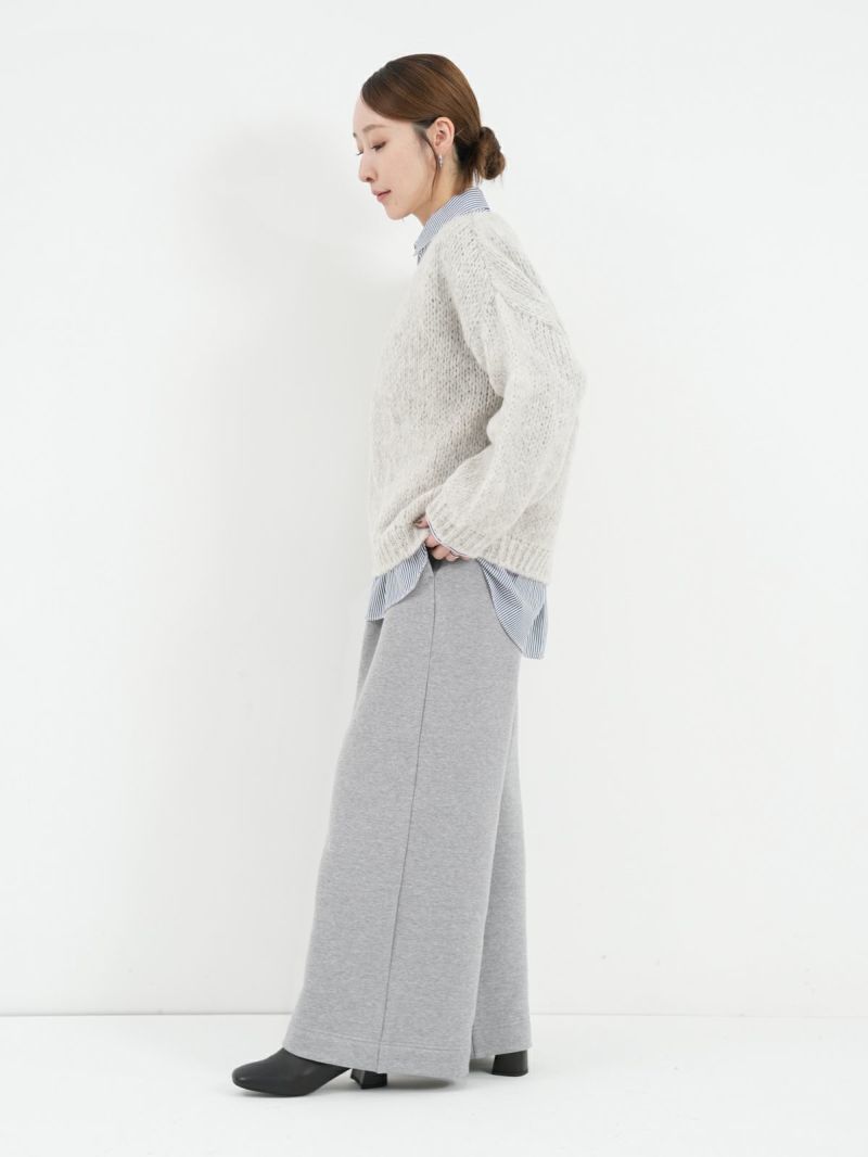 適度な厚みのある素材に裏起毛の温かい着心地のパンツ。 カジュアルにオーバーサイズのニットやスニーカー合わせはもちろん、ジャケットやヒールなどキレイ目アイテムの外しとしてもおすすめです。