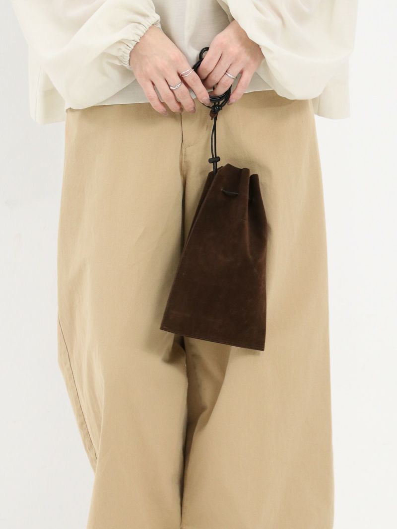 今年も引き続きトレンドの"スウェード"素材を使った巾着バック。 最低限の必要な荷物が入る容量もあり◎シンプルなデザインでカジュアルからキレイめまで様々コーディネートに合わせて、幅広く楽しんでいただけます。