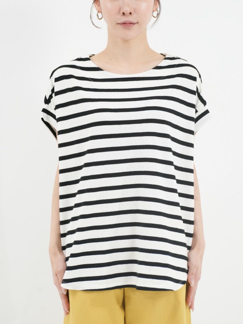 毛羽立ちや糸ムラが少ない空紡糸を使用したコットンT。 広めの身幅で、ゆったりとしてリラックス感があります。フレンチスリーブと、ラウンドヘムがシルエットのアクセントになります。