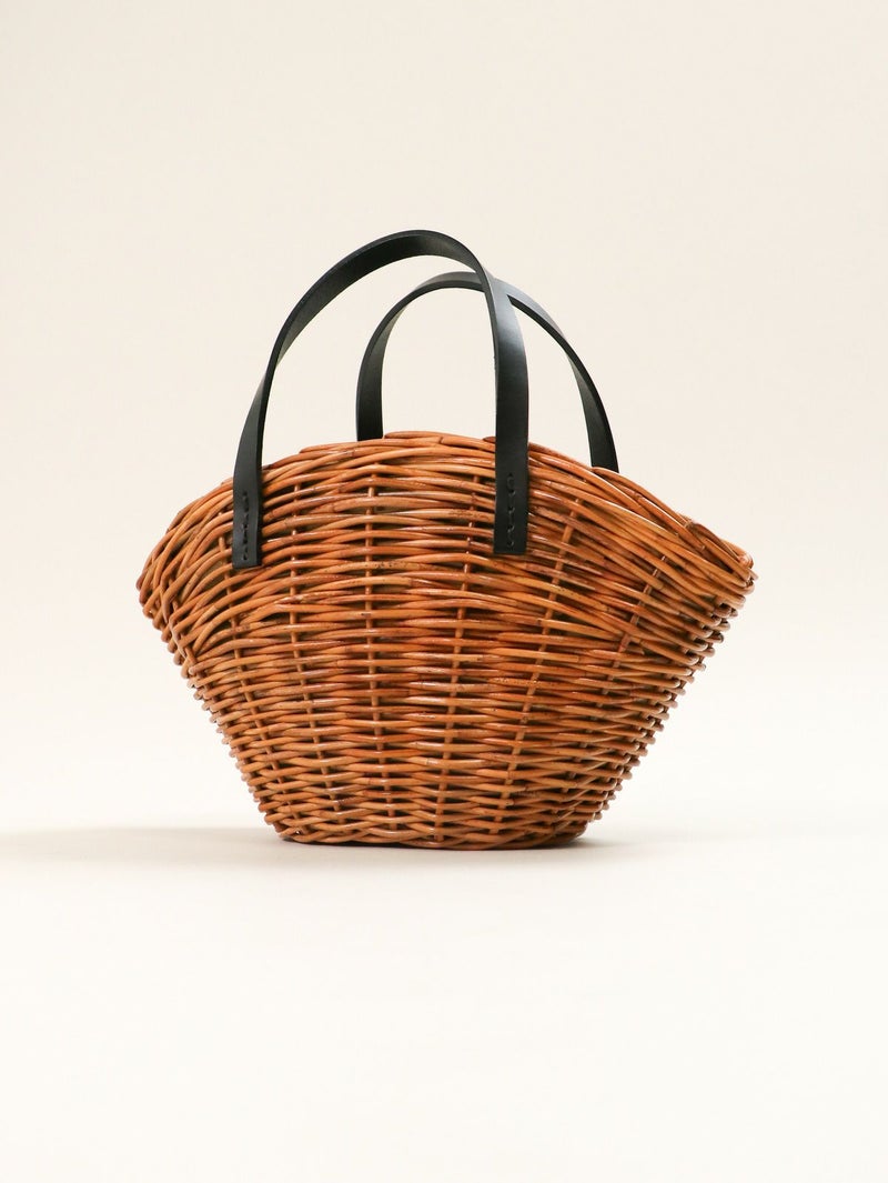 天然素材のアラログで編み上げた船底型カゴバッグ。 ころんと丸みのあるシルエット、ブラックのレザーハンドルが大人っぽさを演出してくれます。開口部の布地をリボンに結ぶことで、さらに甘辛ミックスな雰囲気になる魅力的なアイテムです。