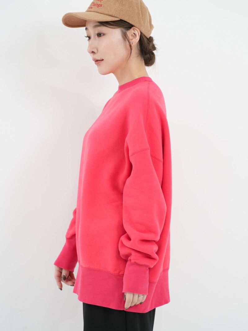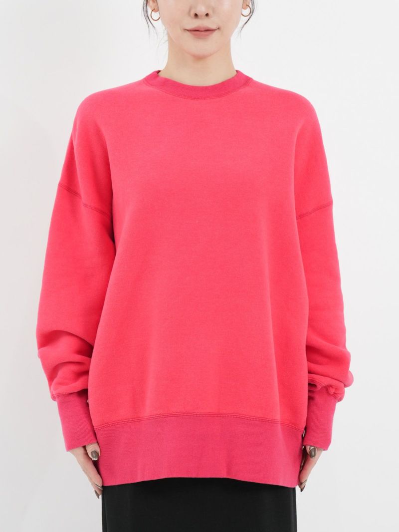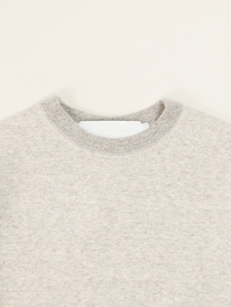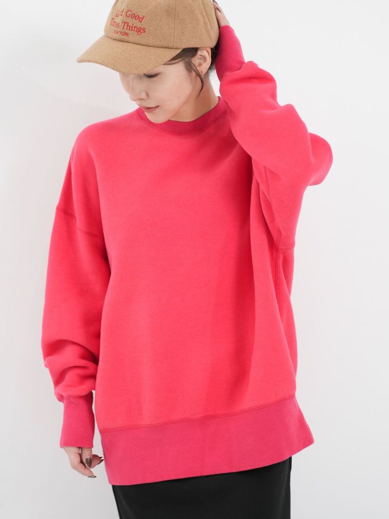 表も裏も両面起毛することで滑らかで優しさのある極上の肌触りのプルオーバー。 リヨセル素材(再生セルロース繊維で環境にも配慮した素材)とコットンの混紡糸を使用した裏毛は、特殊な編み立てにより、肉厚ながら固くならずふっくらとした風合いが魅力的です。 長めの着丈に仕上げ、ドレッシーなボトムスともスタイリングしやすいトップス。シンプルにデニムに合わせても大人っぽくなり、スカートにも合わせやすい一枚。