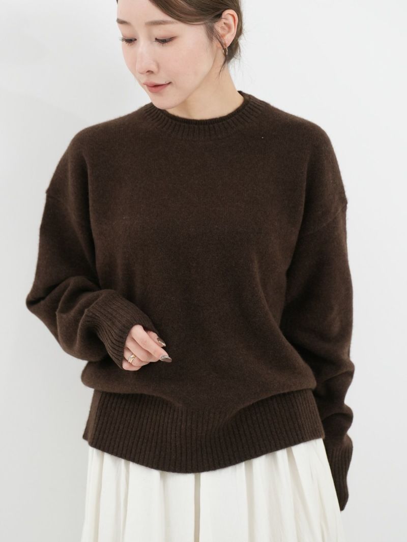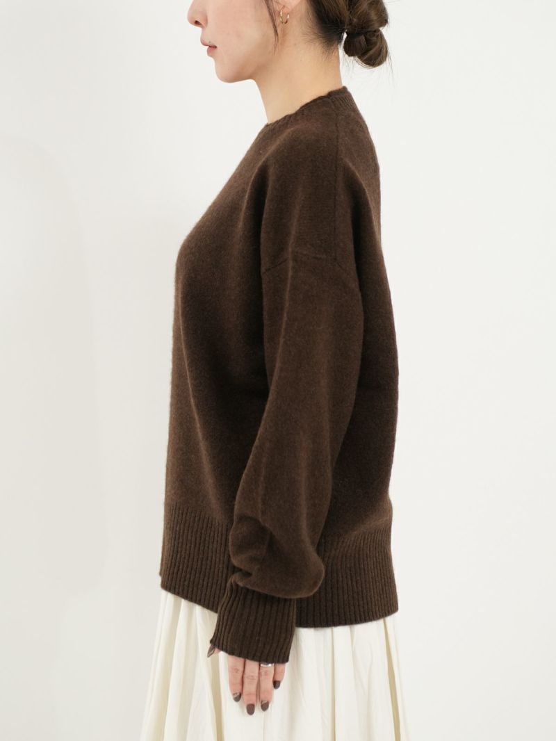 YAKシリーズ新型のゆったりしたユニセックスサイズのクルーネックプルオーバー。 衿ぐりの2重リブがデザインポイント。極上の柔らかさで、軽く暖かく着心地も抜群。熱がこもって蒸れる心配もなく、チクチク感じない優しい肌触り。形もカラーもベーシックなので沢山着回せる一枚です。